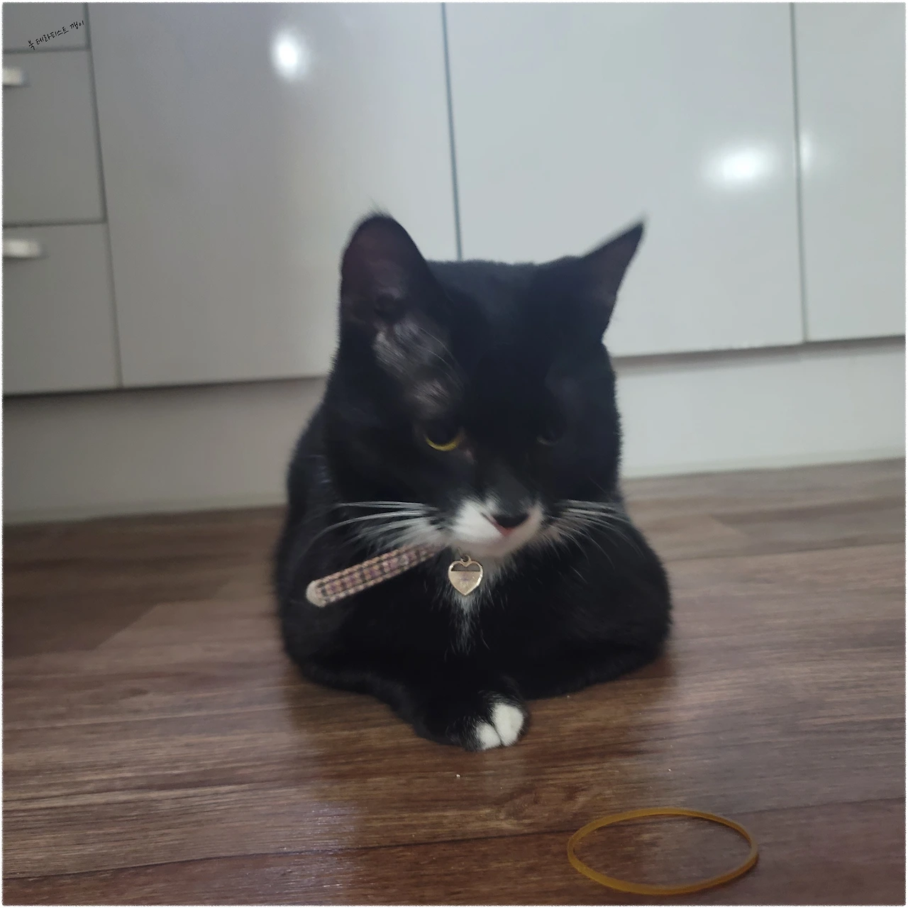 한참을 왔다 갔다 하며 뛰어다니던 아이들이 각자 다른 위치에서 배를 깔고 누워있는데, 흑미는 주로 보일러가 도는 곳에서, 온이는 조금 차가운 곳에서 누워있다. 좋아하는 곳도 다르고 성향도 정말 다른 두 아이는 벌써 체력이 끝났는지 장난감에도 어떤 미동도 하지 않는다. 그저 눈만 왔다 갔다 할 뿐이다.
