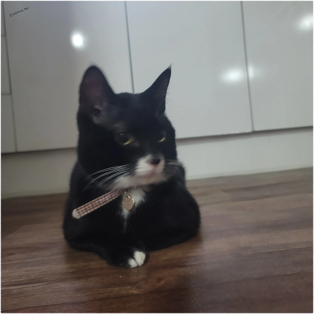 유난히 따듯한 곳을 좋아하는 흑미는 보일러가 도는 부분을 알고 있는 듯 한쪽 구석에서 배를 깔고 앉아있었다. 언제나 그렇듯 아주 귀여운 얼굴을 하고, 덧버선을 신은 듯한 손을 공손히 모으고.. 장난기 가득한 얼굴의 흑미는 온이와 나의 움직임을 관찰하다가 온이에게 장난을 걸기도 하고, 빙글빙글 돌기도 하는데, 온이에게서는 볼 수 없는 행동과 소리에 나는 신기한 듯 쳐다보며 말을 건다.