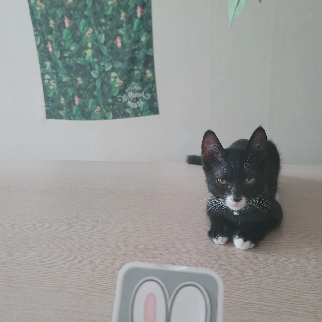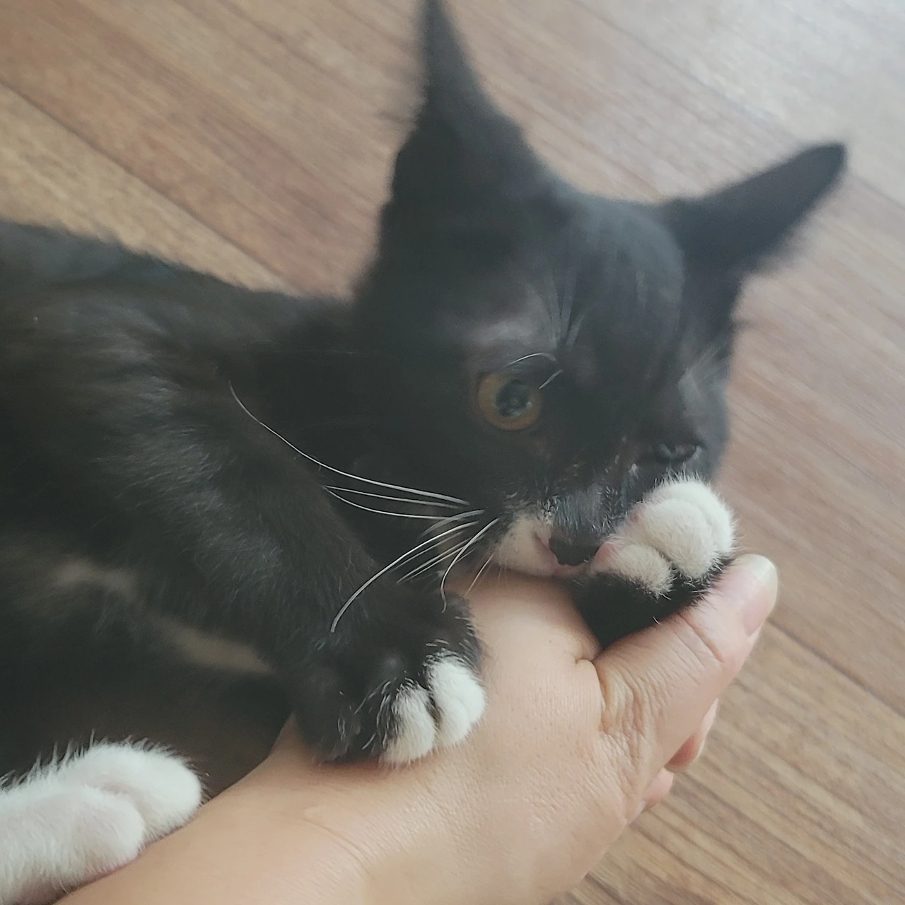 평소에 바닥에 늘어져서 쉬고 있는 온이에게 조용히 다가가 온이를 깜짝 놀라게 하는 것이 취미인 우리 흑미.