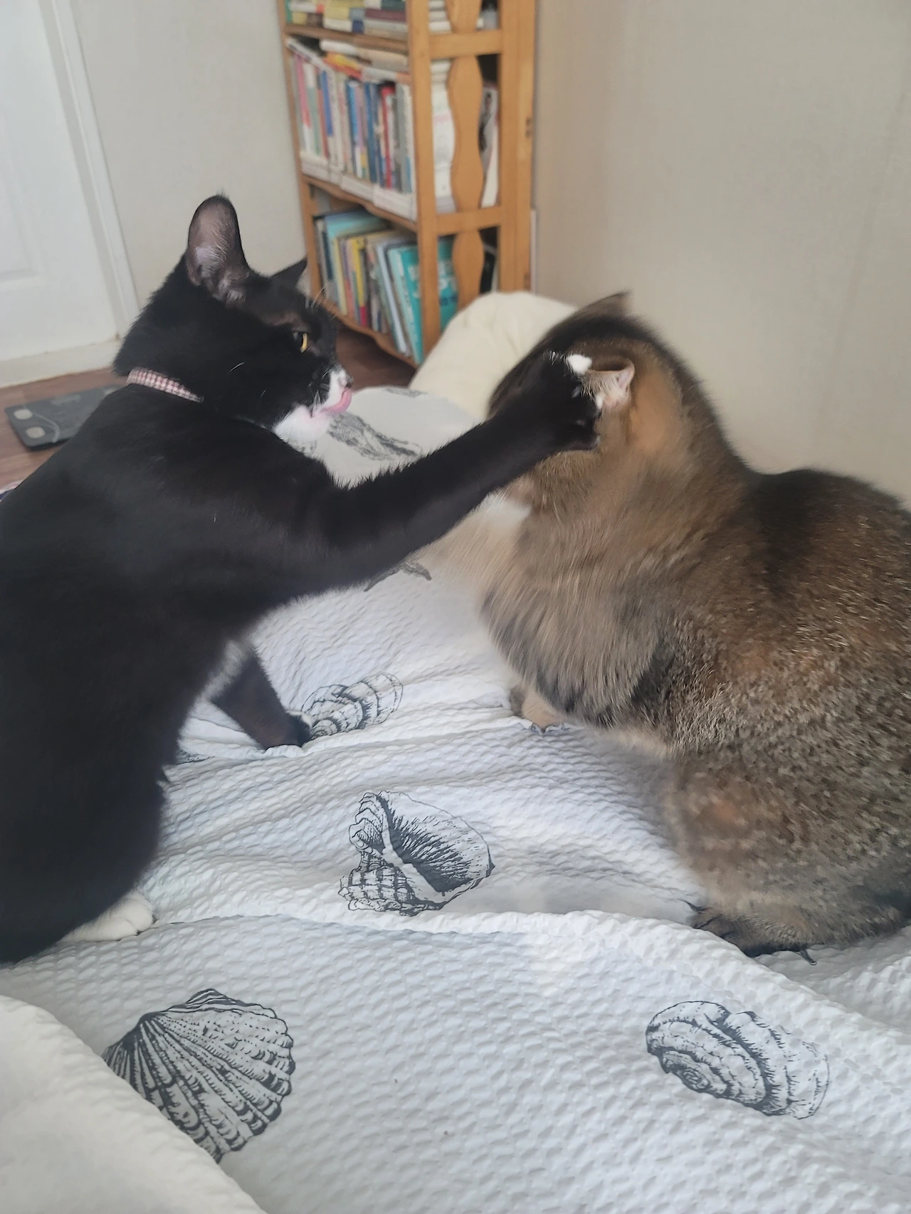 이번에 찍은 사진은 그저 흑미가 온이에게 먼저 선빵을 날리는 장면이라고 생각했는데 이 녀석.. 메롱하고 혀를 내밀어 온이를 도발하고 있었다.