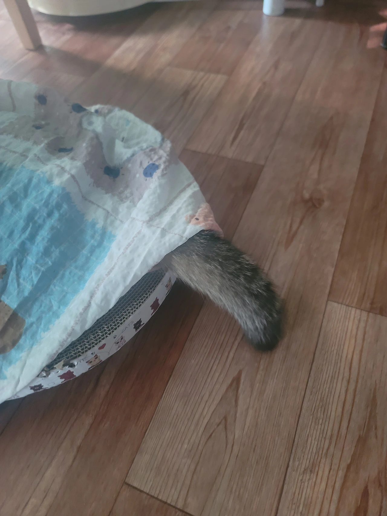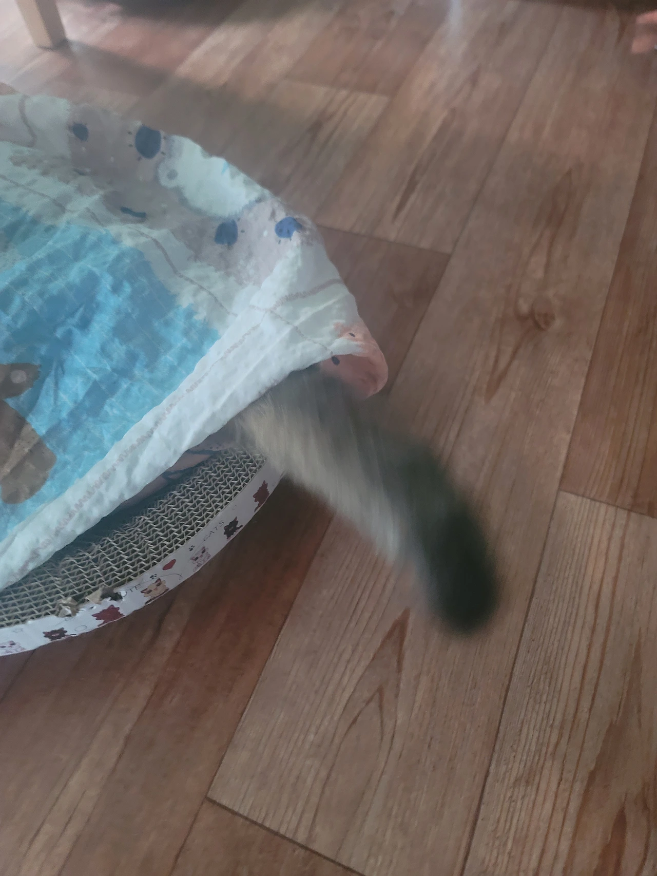 온이도 흑미도 스크래쳐 위에 커튼처럼 쳐져있는 홑이불 사이에 들어가 조용히 있는 것을 매우 좋아한다.