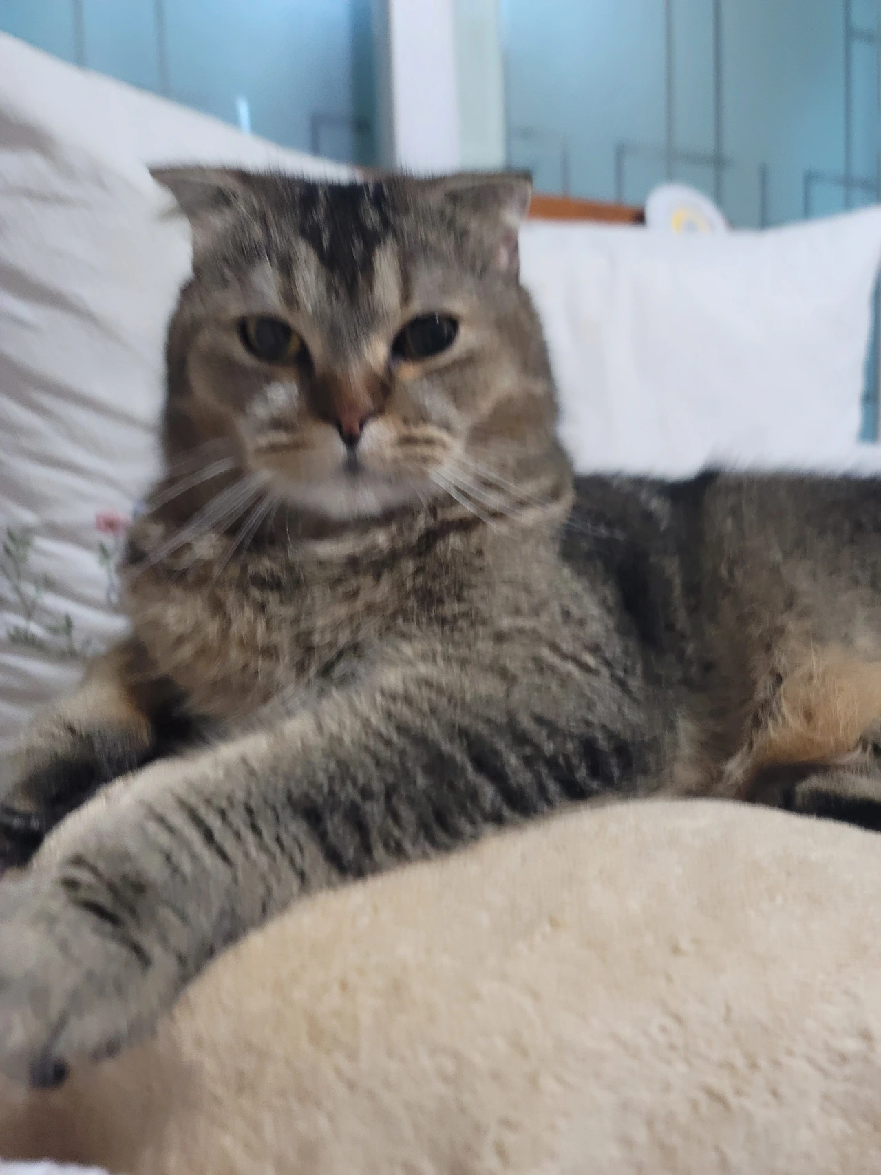 머리를 스다듬으며 "집 잘보고 흑미랑 싸우지는 않았어?" 하고 말을 걸면 만족스럽다는 듯이 내 다리 사이를 왔다갔다 한다. 잘 지내고 있었다는 온이만의 대답이려나..