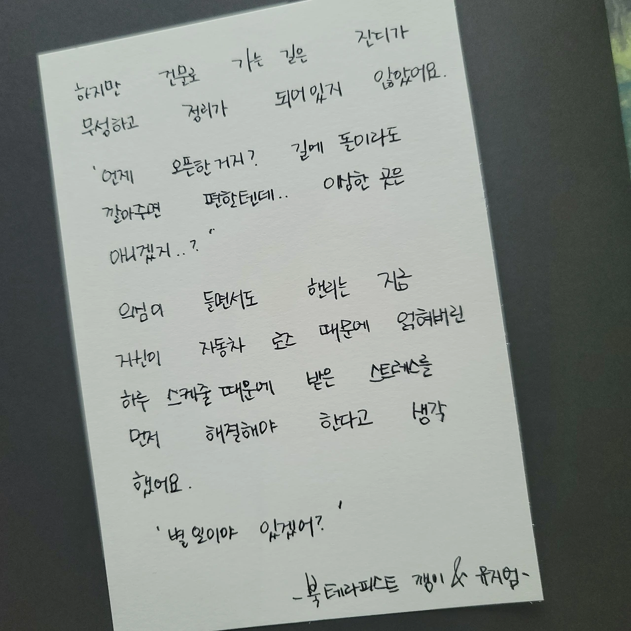 좋은 책을 소개하려고 노력하는 북 테라피스트 깽이입니다.