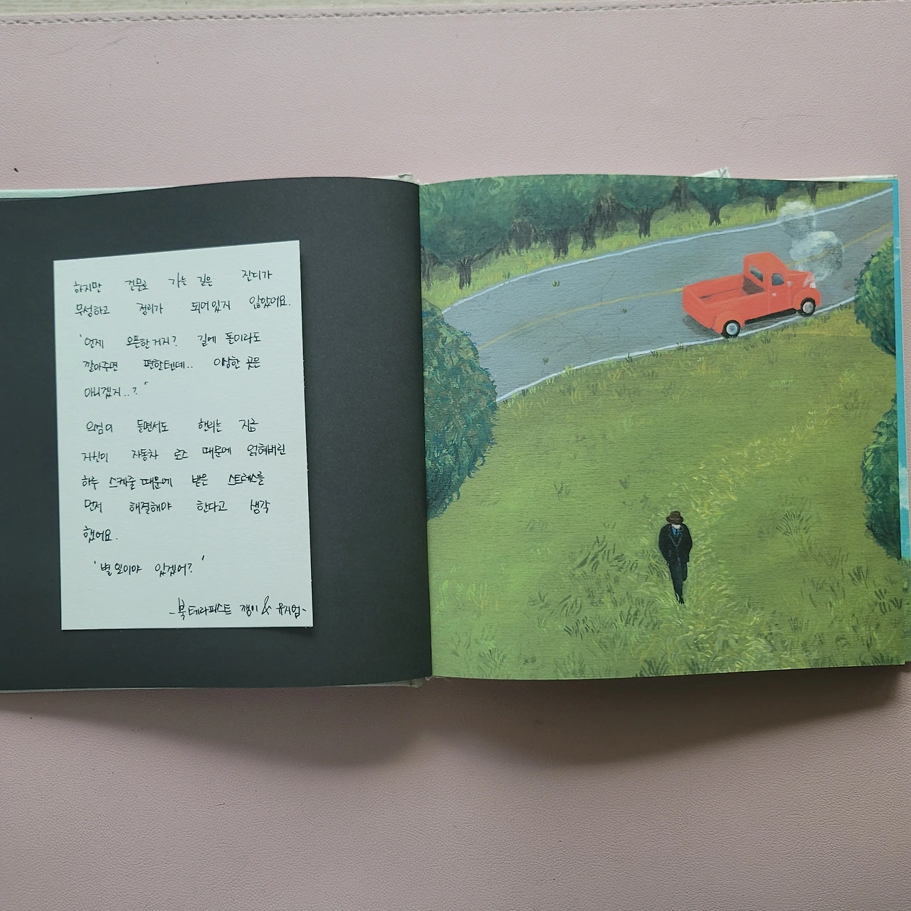 그 그림책으로 제 스토리를 연재해 보려고 합니다. 작가는 마누엘 마루솔이고 스토리는 북 테라피스트 깽이랍니다~ 어설프겠지만 그냥 한 번 읽어봐 주세요~