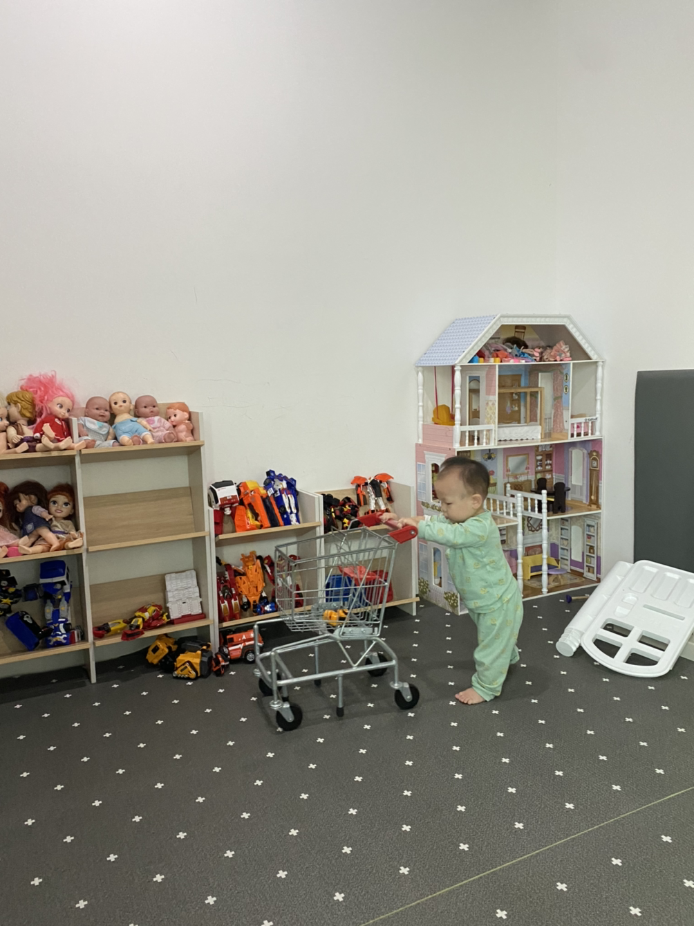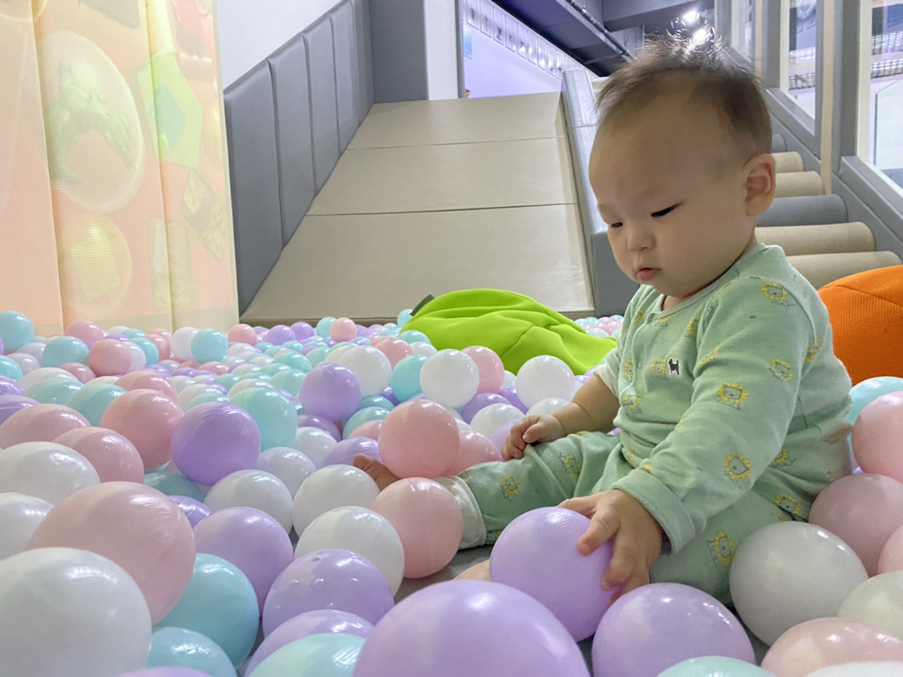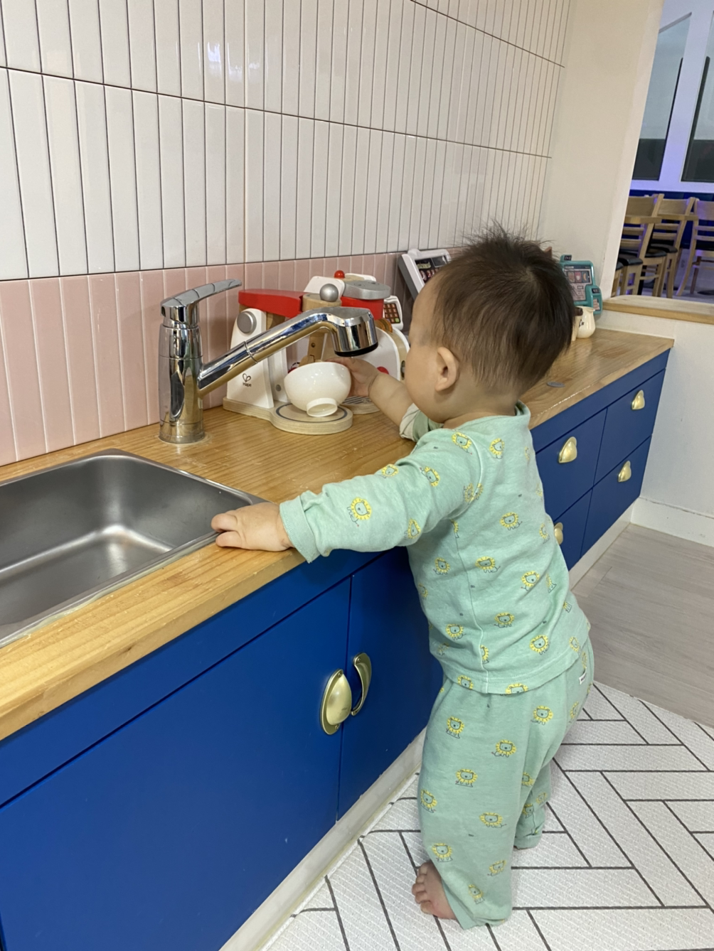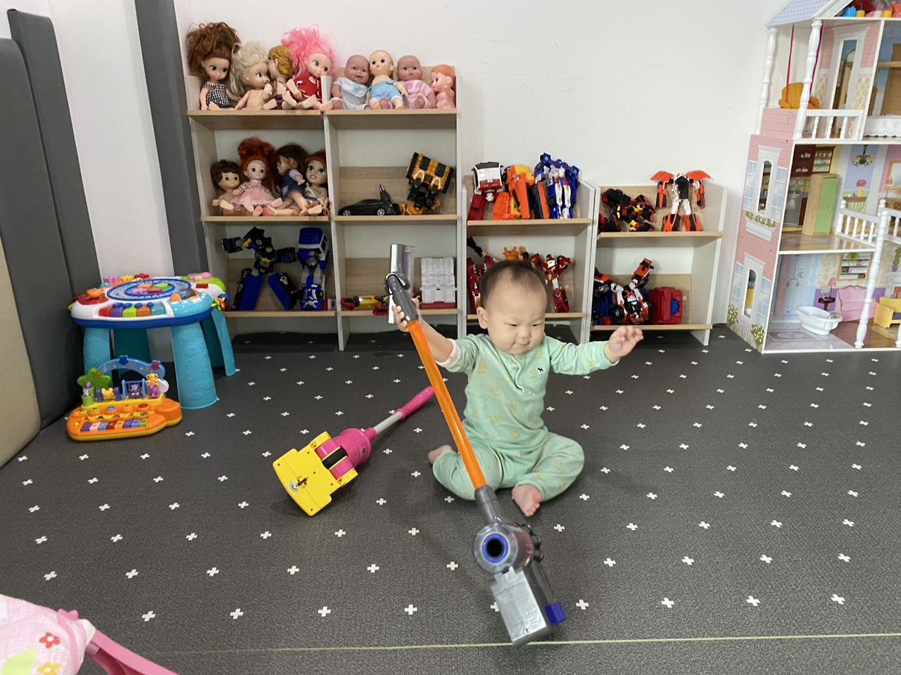 오늘도 역시 강하게 부는 비바람. 미리 알아봐 둔 키즈카페 카드를 꺼낼 때다. 요즘 호기심이 많아져서 탐색하기를 좋아하는데 이곳에 오니 두 눈이 초롱초롱 빛난다. 에어비앤비에 살다 보니 장난감도 몇 개 없이 플라스틱 컵이나 국자, 빗 같은걸 쥐어주며 간신히 시간을 보내왔다. 탐색할 아이템이 고갈되면서부터 하루 종일 나만 졸졸 따라다녔는데 여기에 오니 엄마는 안중에도 없다. ‘안돼~’도 ‘지지~’도 없는 세상이 바로 이곳 키즈카페, 여기가 우리 아가의 천국이로구나!