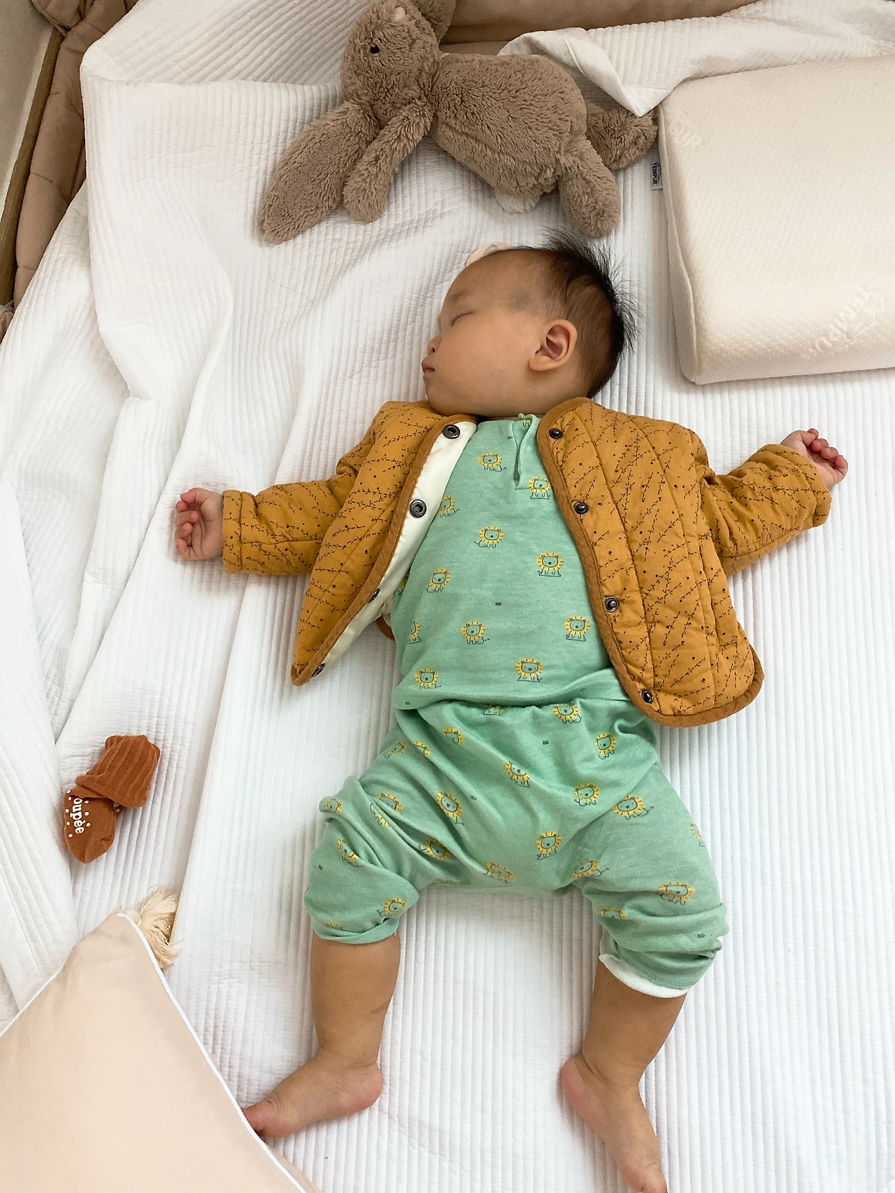 하여튼 그런 이유로 오게 된 키즈카페인데, 이렇게까지 잘 노는 아가를 보니 매일 오고 싶다는 생각이 들 정도다. 마침 사람도 없어서 온 카페를 다 누비며 두 시간 남짓을 신나게 놀았다. 키즈카페에서 집은 차로 4분 거리. 그 사이에 떡실신해버린 아가다.