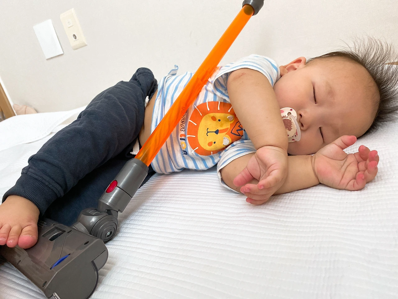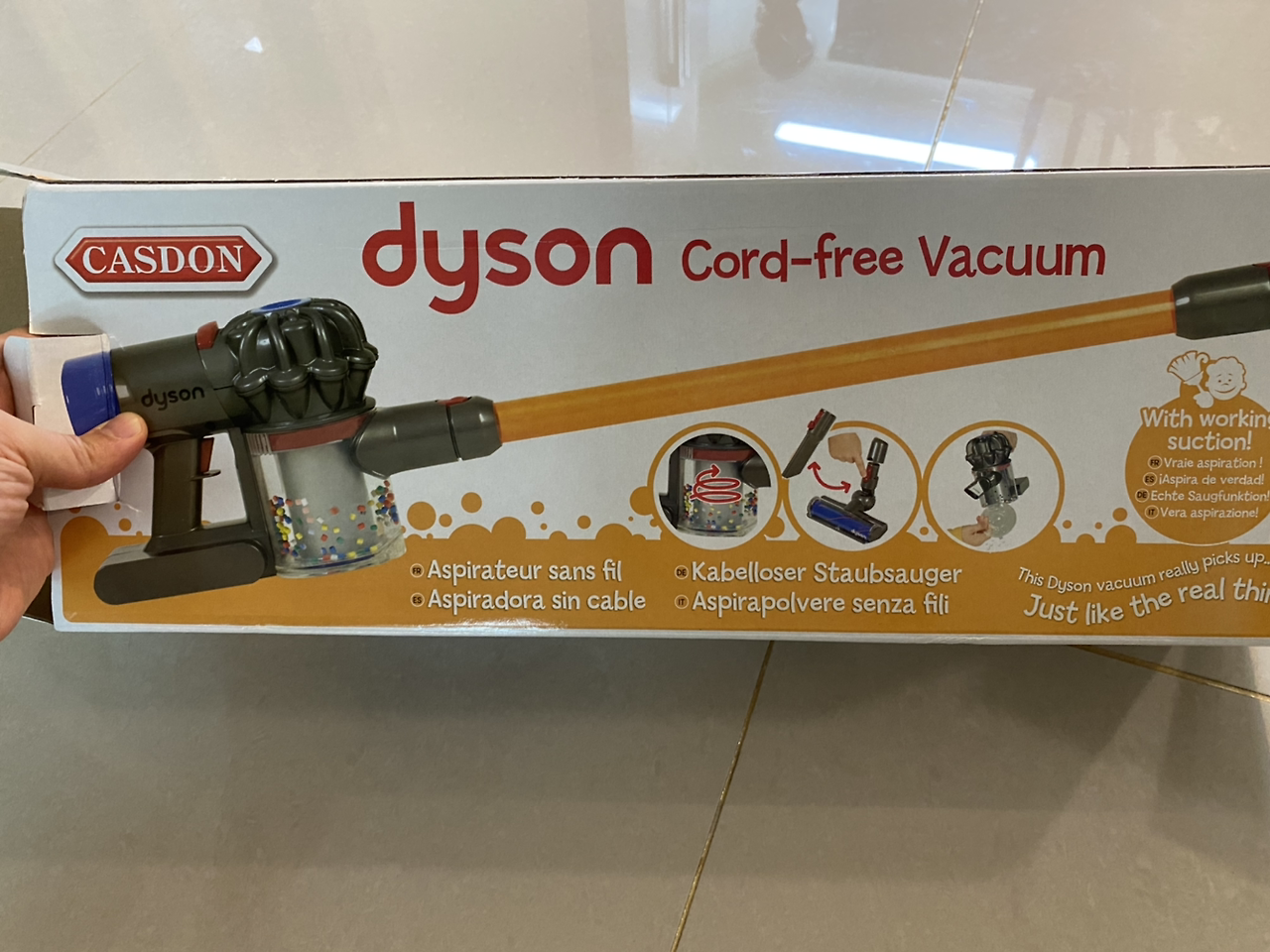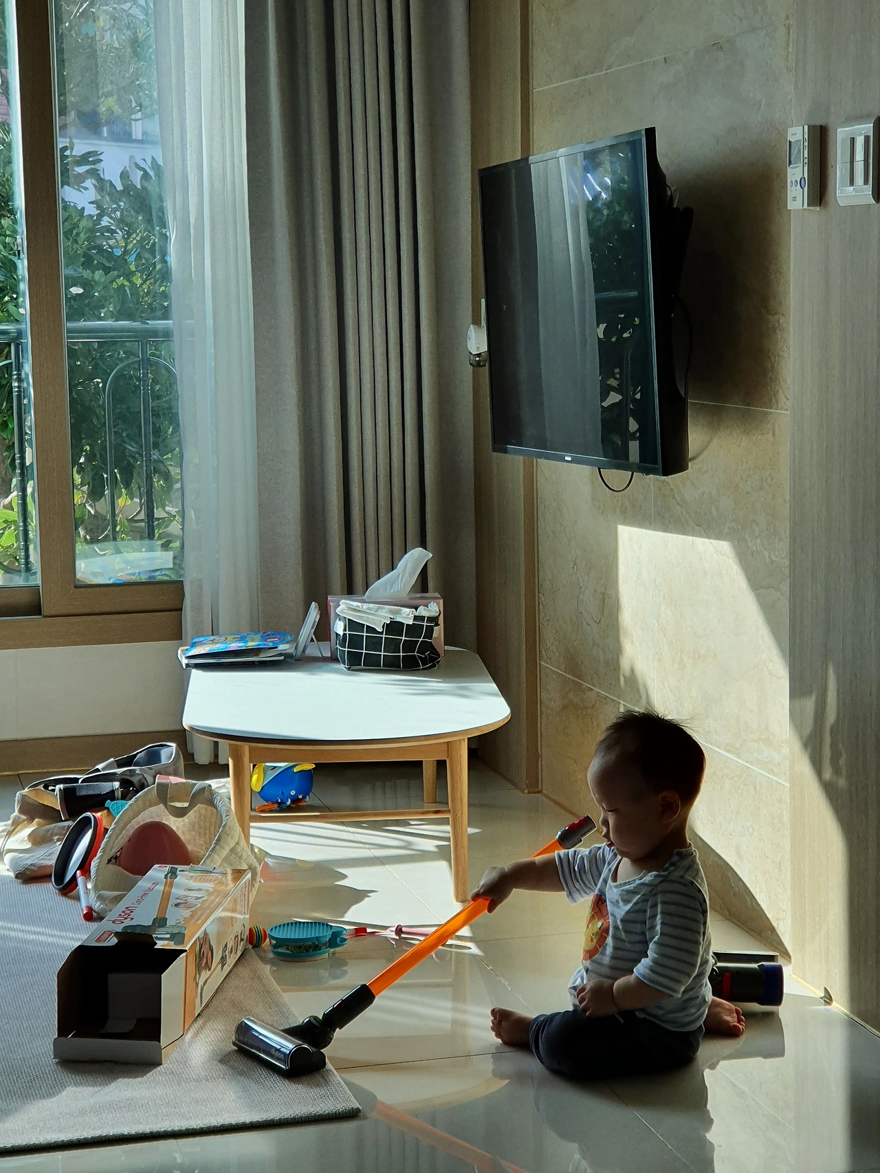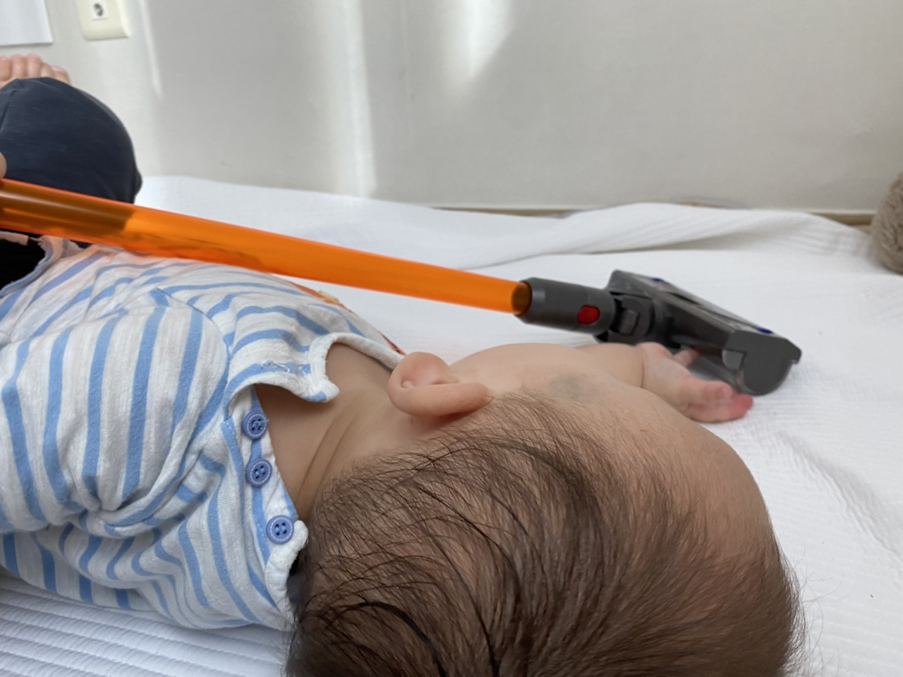 웬만해선 여기서 짐 늘리지 않으려고 했지만, 집에만 있을 때 할 게 너무 없어 사게 된 장난감 청소기다. 다이슨과 똑같은 모양의 이 청소기는 궁극의 효자 아이템으로 거듭났다. 하루 종일 혼자 커다란 청소기를 밀며 온 집안을 누비고 다니며 엄마에게 자유시간을 선사한 우리 아가. 엄마 껌딱지는 잊어주세요~