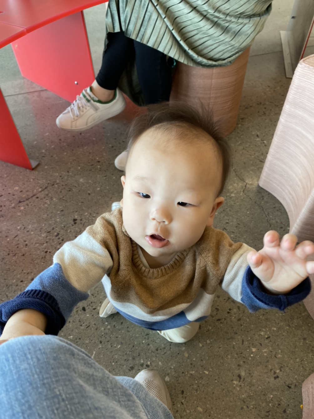 힘들지만 바로 집에 가긴 아쉬워 공백 카페에 찾아갔다. 집에 들러서라도 아기띠를 가져갔어야 했는데, 여기서도 아가는 내 품을 탈출해 온 바닥을 자기 집 안방처럼 누비고 다녔다. 걷기라도 하면 좀 덜 민망할 텐데, 사람들의 시선이 걱정되기 시작했다. 아기가 더러운 바닥을 누비고 다니는데 안아주지도 않고 지켜만 보는 맘충(?)이라 생각하면 어쩌지… 아기 키워본 사람은 이렇게밖에 될 수 없는 현실을 이해해주려나… 그렇게 아기만 잡으러 다니다가 허리가 나가버린 현실이다. 왜 엄마는 도와주지 않는 것인가?