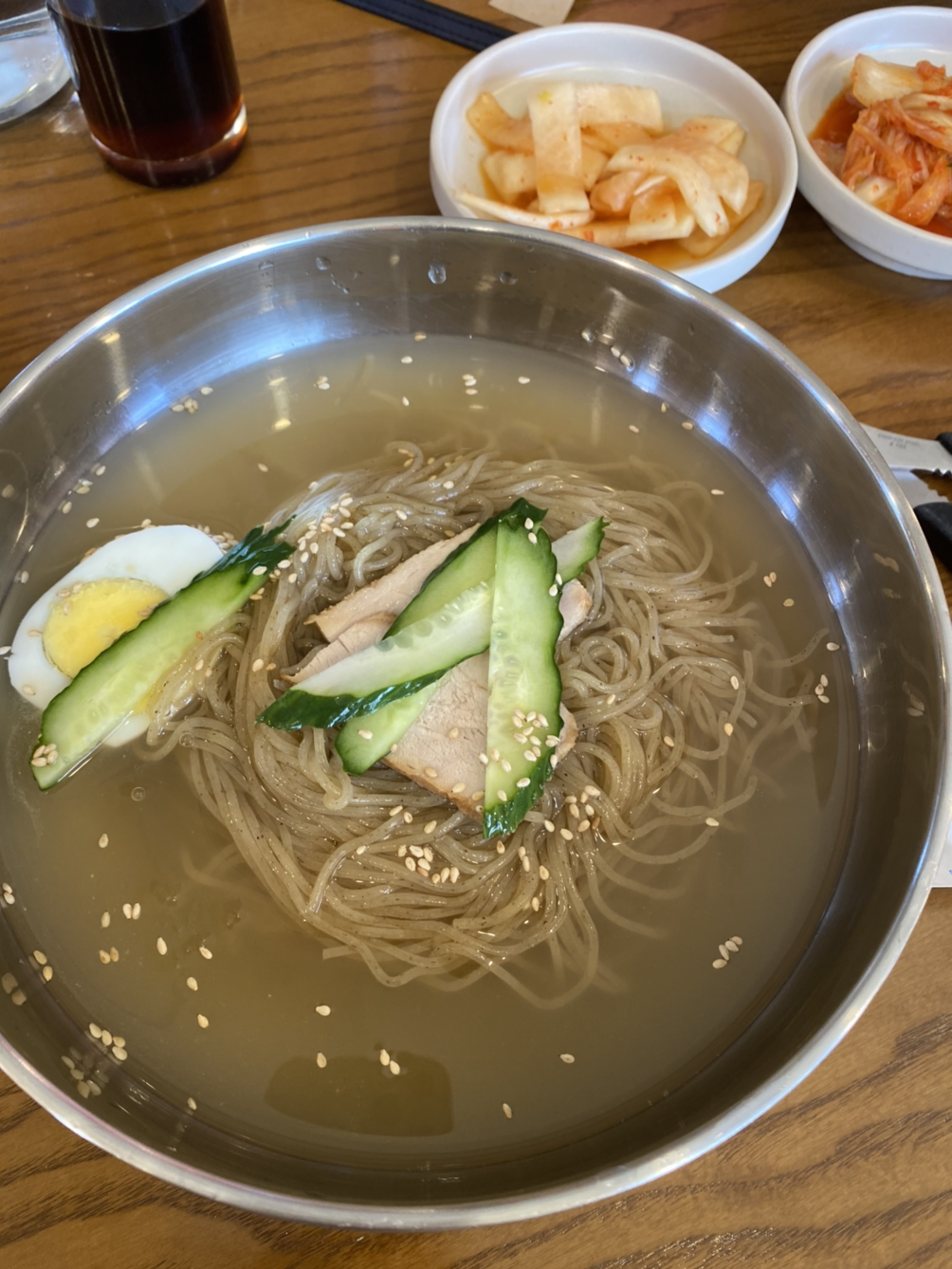 집 근처에 황해도식 냉면 파는 곳이 있어 가보았다. 나는 물냉면을, 엄마는 빈대떡이 들어간 메밀 온면을 시켜 먹었다. 직원은 음식을 내어주면서 음식에 재료에 대한 설명과 더불어 어떻게 먹어야 맛있는지까지 설명해준다. 만 원짜리 음식에 할 수 있는 최대한의 정성을 담은 정갈한 한 그릇이다.