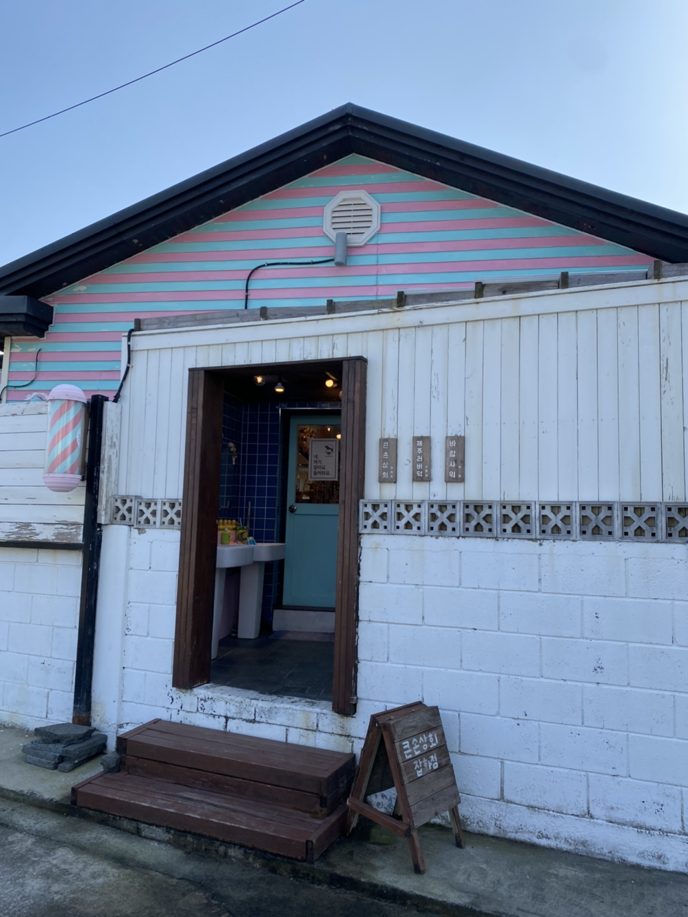 월정리 골목에 있는 소품샵에도 들렀다. 미니멀리스트인 나는 구경만 좋아했지 이런 걸 집에 사들이는 건 질색하는 편이다. 하지만 아가와의 쇼핑은 다르다. 아가 건 별 고민 없이 다 사고 싶다. (또는 어차피 집이 아가 짐으로 점령당해 더 이상 미니멀리스트라 주장할 수 없게 돼서 그럴지도 모르겠다.) 예전엔 ‘도대체 이런 걸 누가 사지?’ 했던 러버덕을 무려 2만 5천 원이나 주고 샀다. 아가가 손에 꼭 쥐고 좋아하니 돈 쓰고도 흐뭇하다.