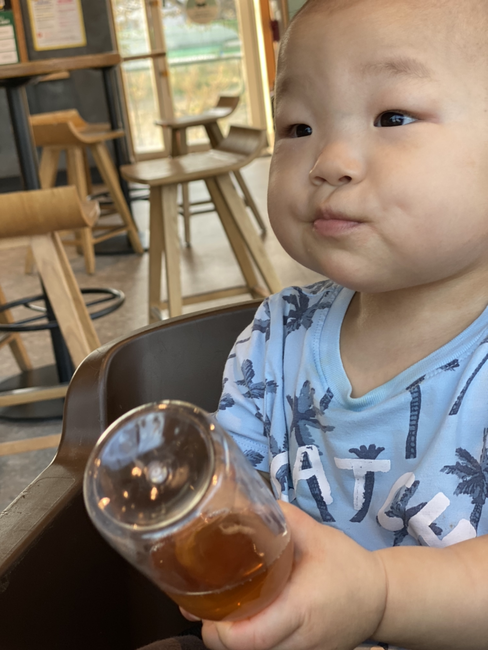 아침 루틴이 된 모닝 산책과 스타벅스. 급기야 스타벅스 직원이 어제도 오시지 않았냐며 반겨줄 정도로 단골이 되어버렸다. 꼭두새벽부터 열고, 아기 의자도 있고, 심지어 아기가 먹을만한 과일도 파니 이보다 더 편할 순 없다.