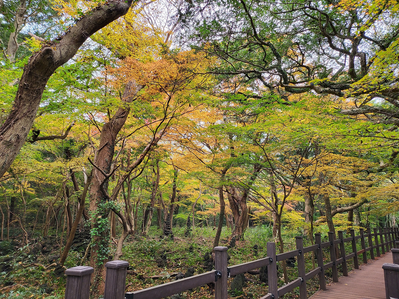 2주 전 엄마, 아빠와 갔던 비자림, 이번엔 아가와 남편과 함께 가보았다. 사실 그 전 방문 때 사람이 너무 많아 줄 서서 이동하다시피 한 기억이 별로라 다시 가게 될 줄 몰랐다. 그런데 제주에 있는 친구가 지금 비자림에 있다며 사진을 보내왔는데 내가 갔던 그 비자림이 아니었다. 단풍이 들기 시작한 것이다! 아기 데리고 와보라 추천해줘서 다시 가봤다.