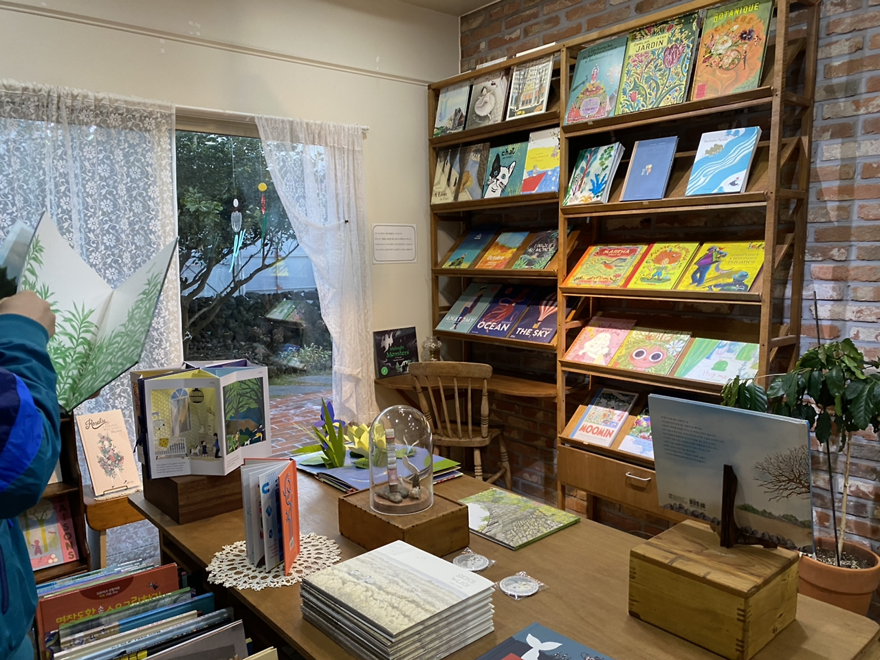 오후엔 또 다른 책방인 사슴 책방에 다녀왔다. 사슴책방은 그림책 전문 책방인데, 언뜻 봐도 대충 모은 그림책이 아니다. 사장님이 엄선한 책들을 전 세계에서 들여와 예쁘게 진열해둔, 정성 가득한 책방이다. 아가가 볼만한 책 있으면 사주려고 간 건데, 아가가 볼만한 책보단 예술작품에 가까운 예쁜 책들이 대부분이다. 구매욕을 자극하는 그림책들이 몇 권 있었지만, 여기서나 이렇게 예쁘지 우리 집에 가면 결국 아가의 손을 피해 높은 책장에 꽂혀있다 잊혀질 것이 뻔하니 참아야 했다.