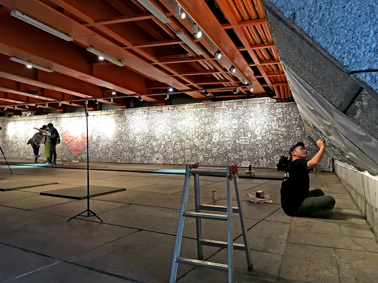 당시에 했던 전시나 행사가 현대의 젊은 아티스트와 나이 든 아티스트는 어떻게 융합할 수 있는지에 대한 토론이나, 잠비아에 있는 소수의 여성 아티스트들을 모아 전시를 한다든지, 아프리카 남쪽에 있는 국가의 아티스트들을 초대해서 다 같이 네트워크를 형성하고 경험을 나누는 프로젝트도 있었고요. 저도 이런 프로그램이 너무 좋아서, 영상 촬영을 하면서 도와주고 한쪽에 앉아서 그림을 그리면서 시간을 보내기도 했었어요. 그러던 중, 이 친구가 제 그림을 보고 “요요진, 우리 이번에 행사하는데 라이브 페인팅으로 큰 곳에 큰 그림을 그려봐!”라고 먼저 제안을 해줬어요.