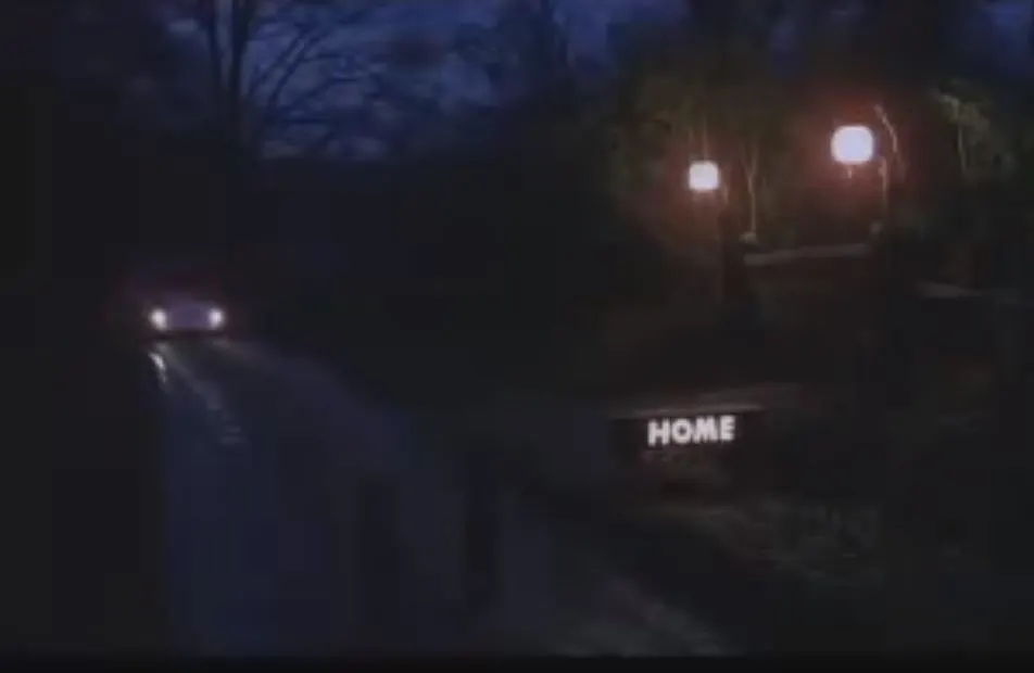 장면(1)에서 카메라는 수평적인 움직임을 오른쪽으로 이동을 하며, 천천히 'Home'의 내부(2)를 비춰 냅니다.