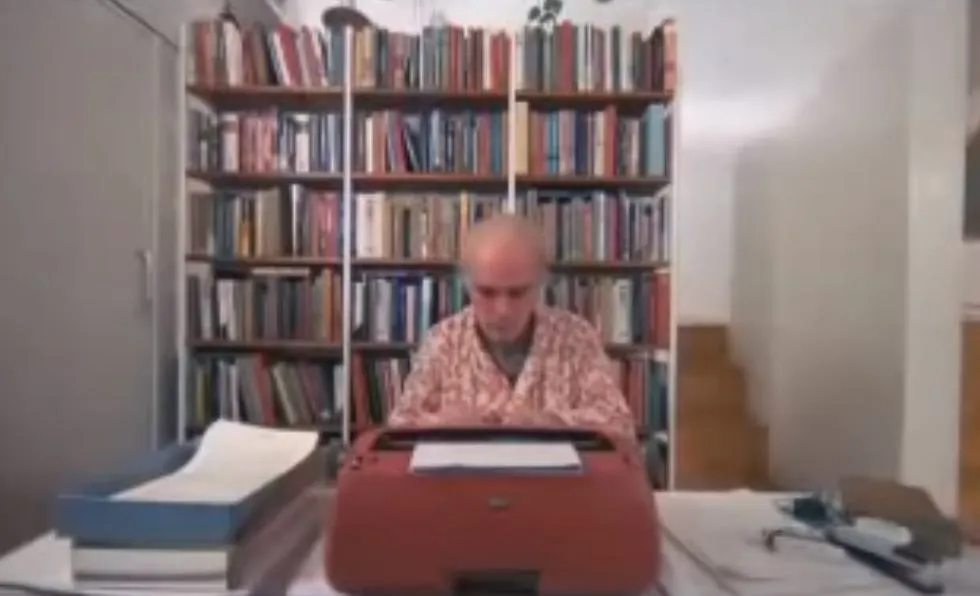 그리고는 장면이 전환되며 'Home' 내부의 조용하고 평화로운 서재(1)에서 한 남자가 타이프라이터로 열심히 글을 쓰고 있는 모습이 보입니다.