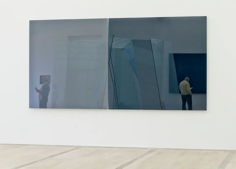 서로 다른 톤의 Grey색이 입혀진 각각의 정사각형 glass 두 개를 쌍으로 이어 붙인 이 작품들은 거울이 가진 특징, 즉 거울 주변의 사물을 반사하고 투영하는 효과를 보여주고 있습니다. 진하게 칠해진 유리는 더 거울 같은 특징을 지니기에 많은 빛을 반사시킬 것이고, 엷게 칠해진 유리는 투과시키는 빛이 더 많을 것입니다.