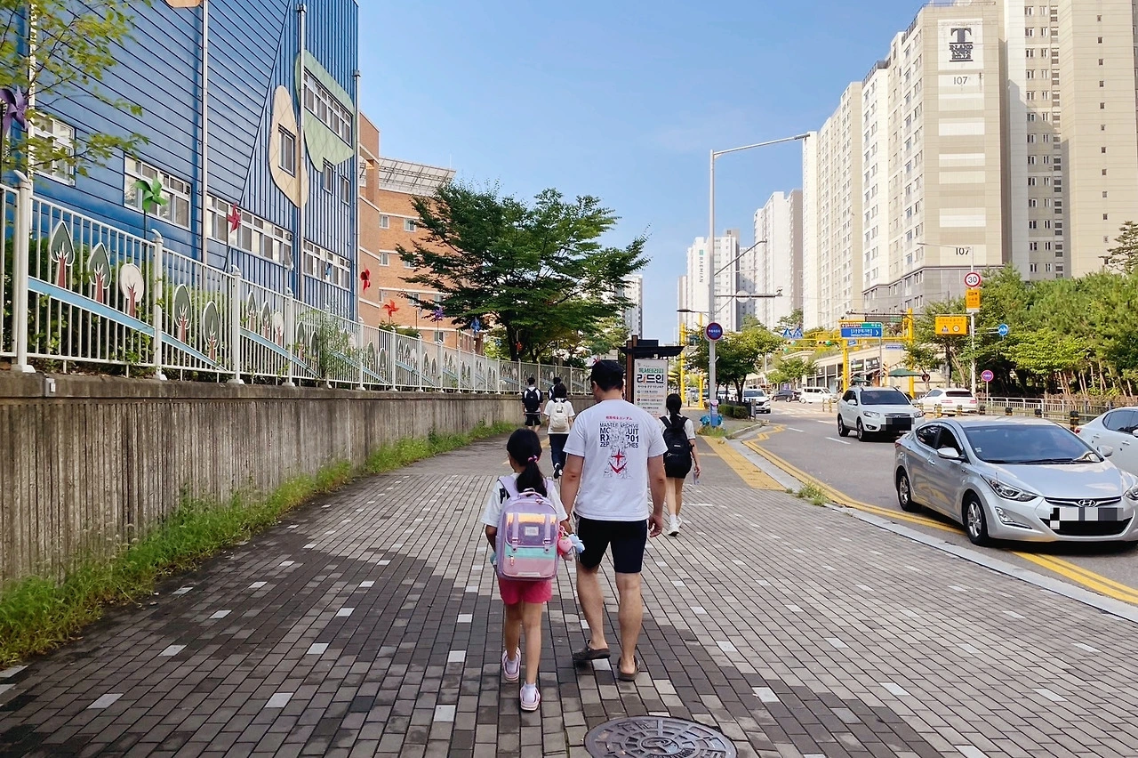 딸아이가 개학을 했다. 2학기의 첫 등교는 왠지 손을 잡아주고픈 생각이 들어 등원도우미를 자처했다.