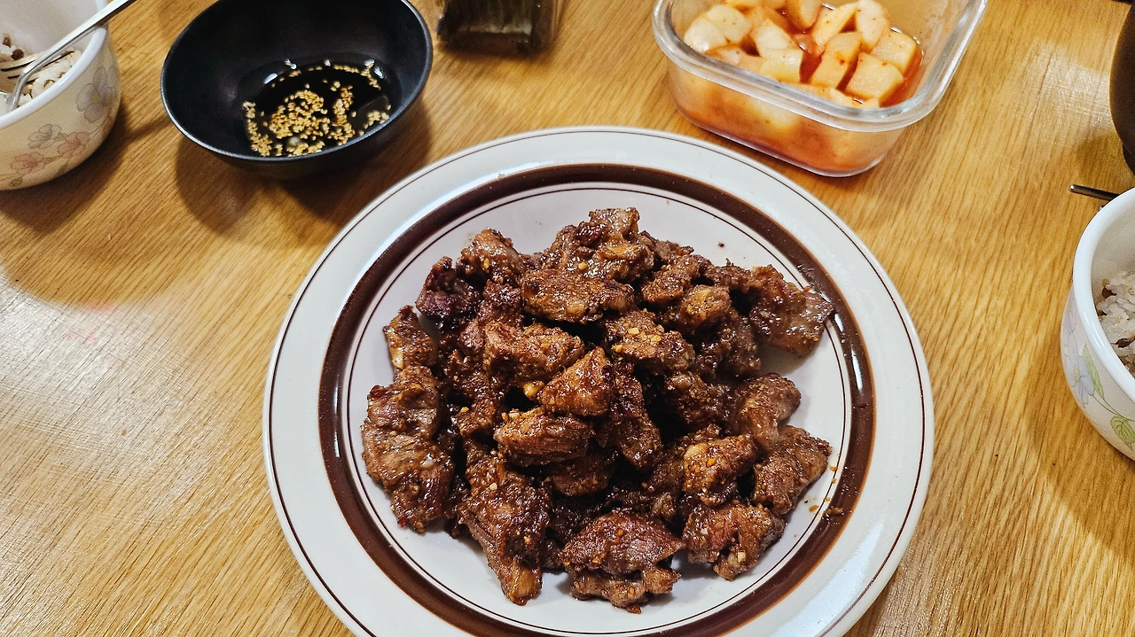 다음 갈빗살은 캠핑장에서 숯불로 구워먹어야겠다. 아무래도 가장 큰 차이는 불이었던거 같다는 미련이라도 남겨놔야 하겠다.