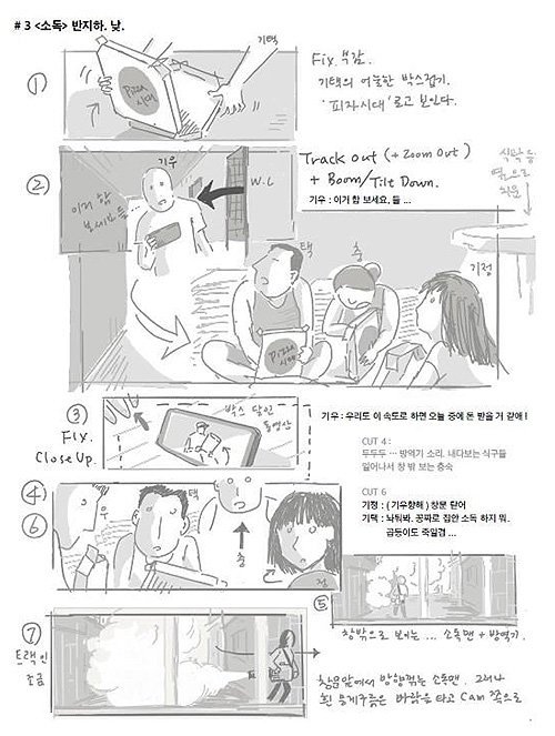 봉준호 감독이 직접 그린 영화 '기생충'의 스토리보드, 출처 CJ ENM
