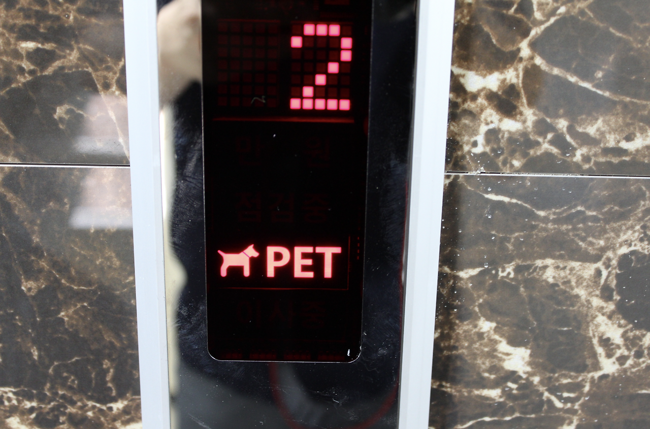 그런데 이 엘리베이터는 무려 친절하게도 안에서 버튼 하나만 누르면 개가 타고 있다는 시그널을 외부에 표현해 줍니다. 그래서 기다리는 탑승 대기자에게 어느 정도 대응을 해서 마음의 준비를 할 수 있도록 도와주죠.