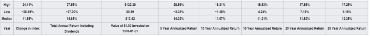 5년 연평균 : -2.35 ~ 28.56%10년 연평균 : -1.38 ~ 19.21%15년 연평균 : 4.24 ~ 18.93%20년 연평균 : 7.19 ~ 17.88%25년 연평균 : 9.15 ~ 17.25%
