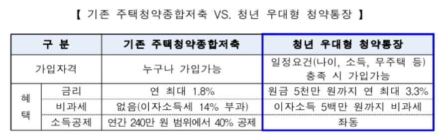 그럼 기존의 일반 주탁청약저축이랑은 어떤 차이가 있을까?
