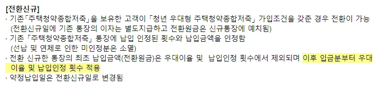 단, 기존에 납입한 원금에 대해서는 우대이율이 적용되지 않으며, 전환 이후부터의 납입분부터 횟수와 이율이 적용된다.