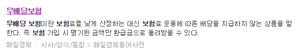 이는 말 그대로 배당이 없다는 뜻이며, 계약자의 보험료로 어떤 수익이 났을 경우에 계약자와 수익 배분을 하지 않겠다라고 해석하면 된다.
