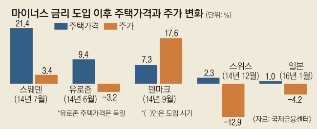 물론 마이너스 금리를 도입한 국가에서 모두 부작용만 일어난 것은 아니다. 스웨덴이나 덴마크는 주택 가격과 주가가 모두 상승하는 효과를 가져오기도 했다.