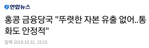 분명 이런 시위가 관광산업과 더불어 홍콩 자체적으로 경제적 타격이 아예 없지는 않을 것이지만, 일반적으로 우리가 우려하는 홍콩 금융에 스크래치가 가지는 않는다는 의미일 것이다.