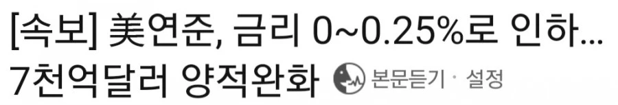 지난번 빅컷 이후 12일 만에 2배 포인트를 더 내렸으며, 미국 금리는 5년 만에 다시 0.00~0.25%로 '제로금리'에 들어섰습니다.
