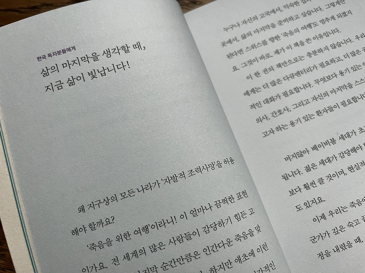"자신의 삶을 스스로 선택하며 살아온 사람이라면, 삶의 마지막 순간 역시 스스로 결정할 수 있어야 한다"