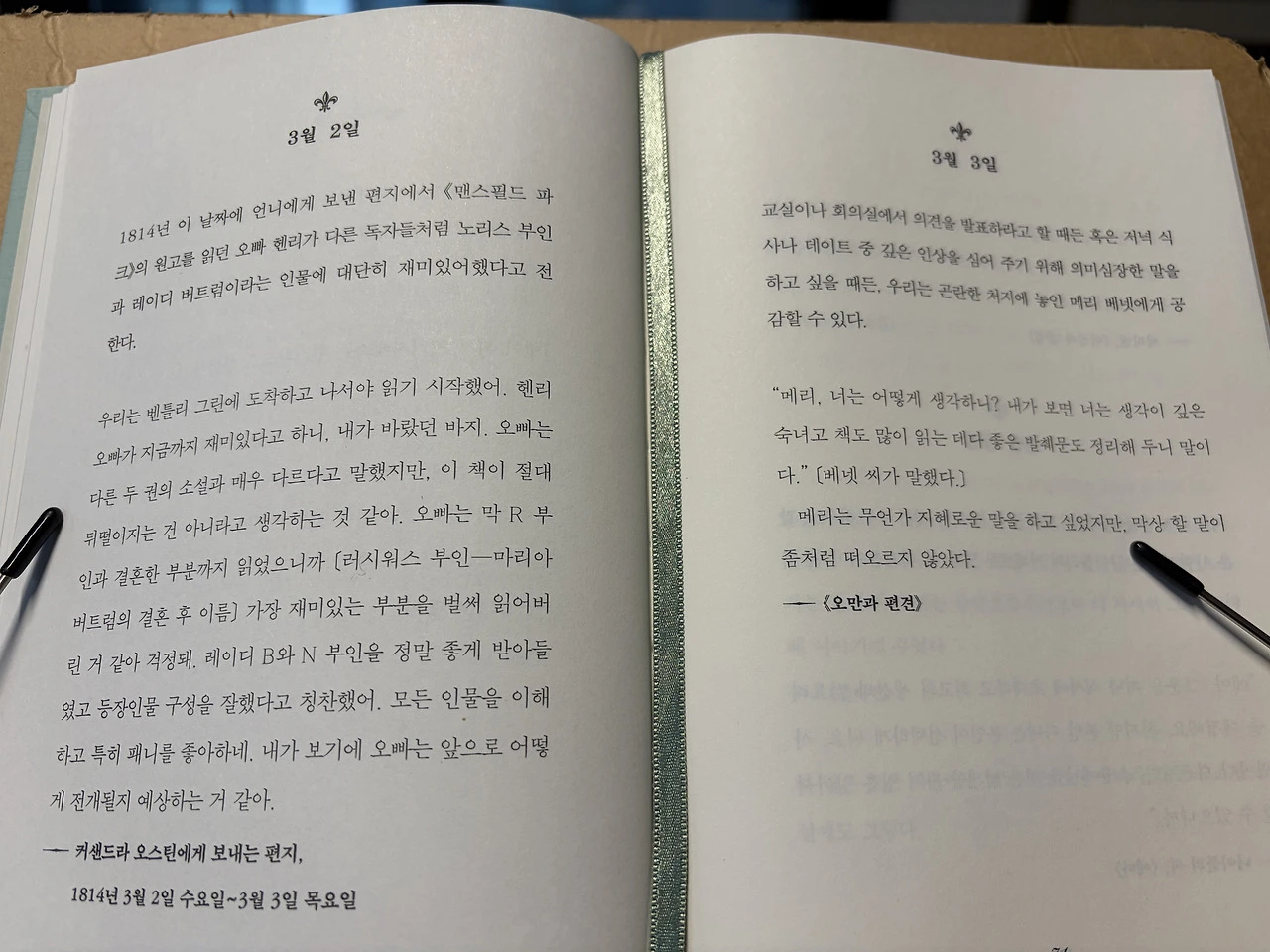 이 책을 펼쳐 읽기 전엔 제인 오스틴의 여러 소설들을 요약한 모음집일 거라 생각했는데 내 예상을 빗나갔다.