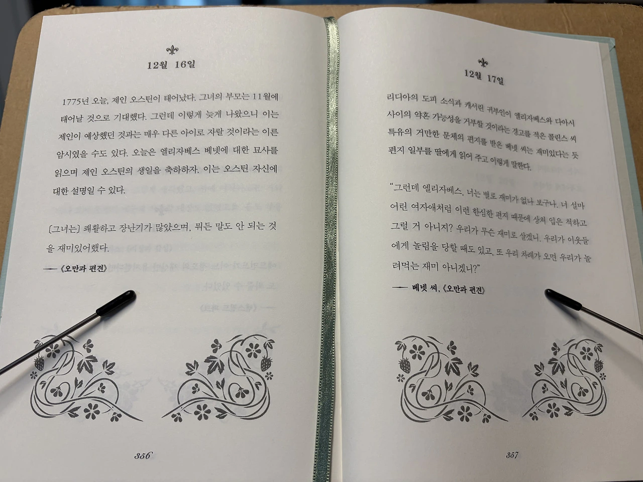 책의 제목처럼 365일 동안 매일 날짜별로 소설 속 한 문장을 적어 놓았는데,