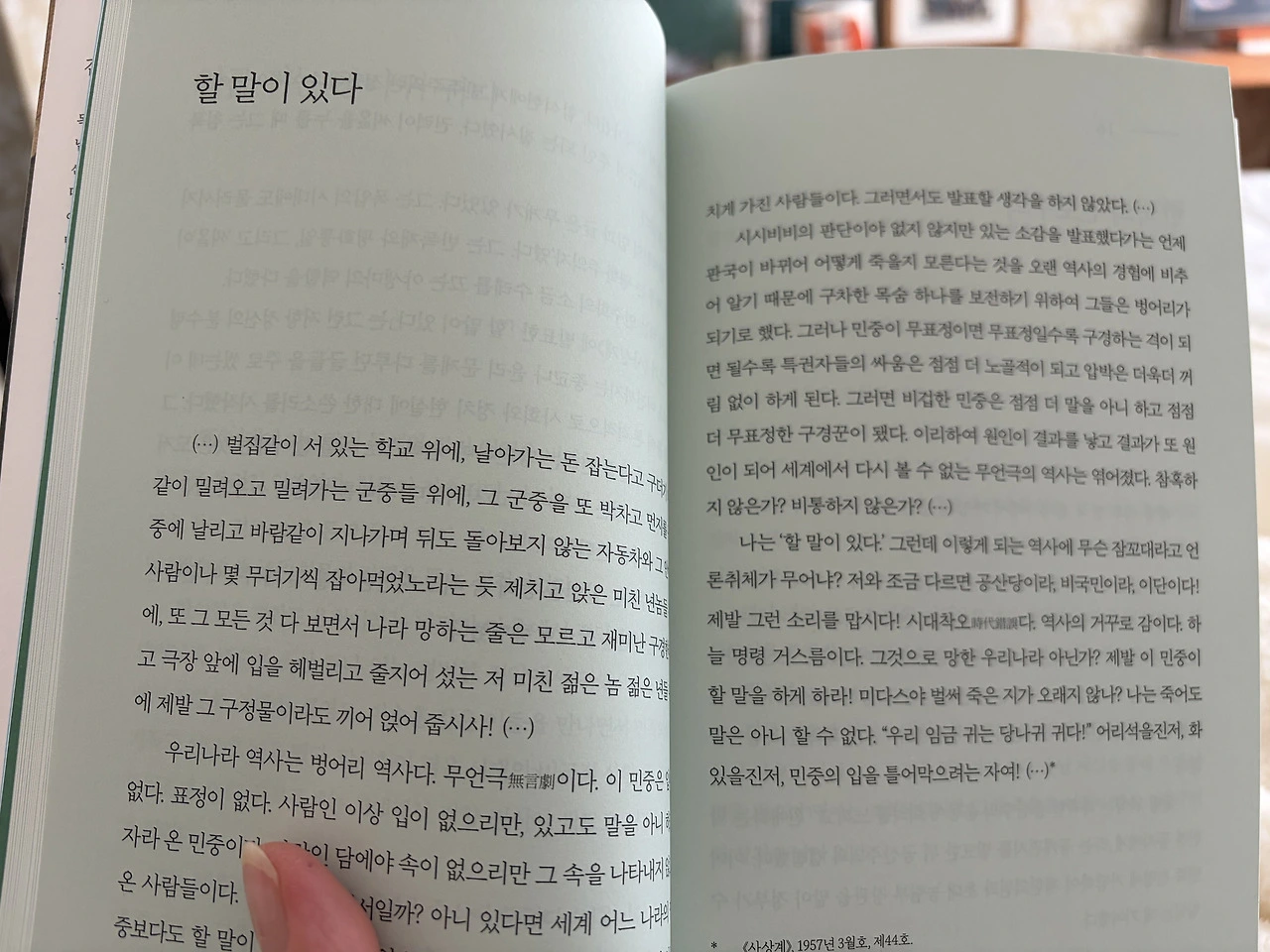 이 책의 제목으로 쓰인 함석헌 선생의 [할 말이 있다]다.