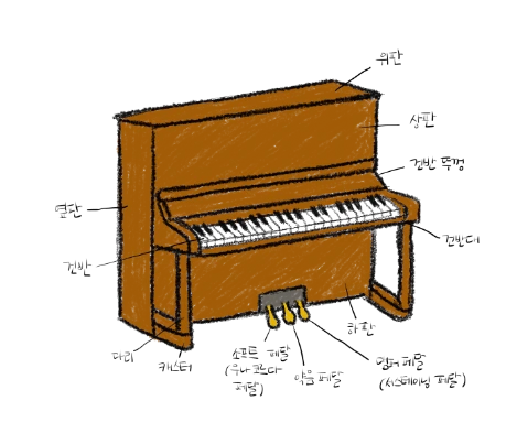 보통 어린 시절에 피아노 학원을 몇 년 다니다 보면 부모님이 집 거실 한구석을 자리하도록 사주시는 그런 피아노들(?)을 ‘클래식 피아노’라고 합니다.(웃긴 건 이때쯤 되면 또 학원을 그만두고 싶어 지는 마음이 생기지 않으시나요? 저... 저.. 저만 그런가요?) 클래식 피아노는 기본적으로 우리가 ‘피아노’ 하면 쉽게 상상하는 그런 피아노이기도 합니다. 이런 피아노는 건반에 연결된 ‘해머’가 줄을 치는 방식으로 소리를 냅니다. 클래식 피아노는 크게 두 종류로 구분할 수 있는데요, 그 종류는 아래에 바로 이어서 설명하도록 하겠습니다.