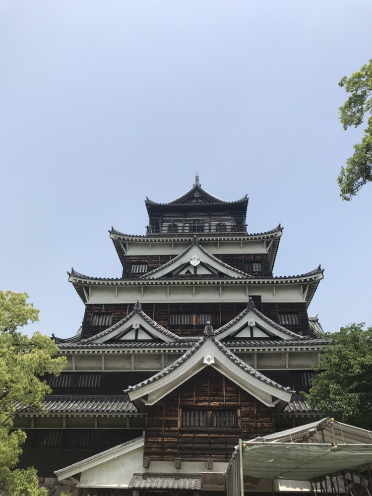히로시마 원폭 때 완전히 무너져 내려 새로이 개축을 한 탓인지 내 이름은 목조 성 새롭게 지어진 성 하며 말하는 듯했다. 겉에 마치 목조 성을 뽐내기 위한 그림을 그린듯했다.