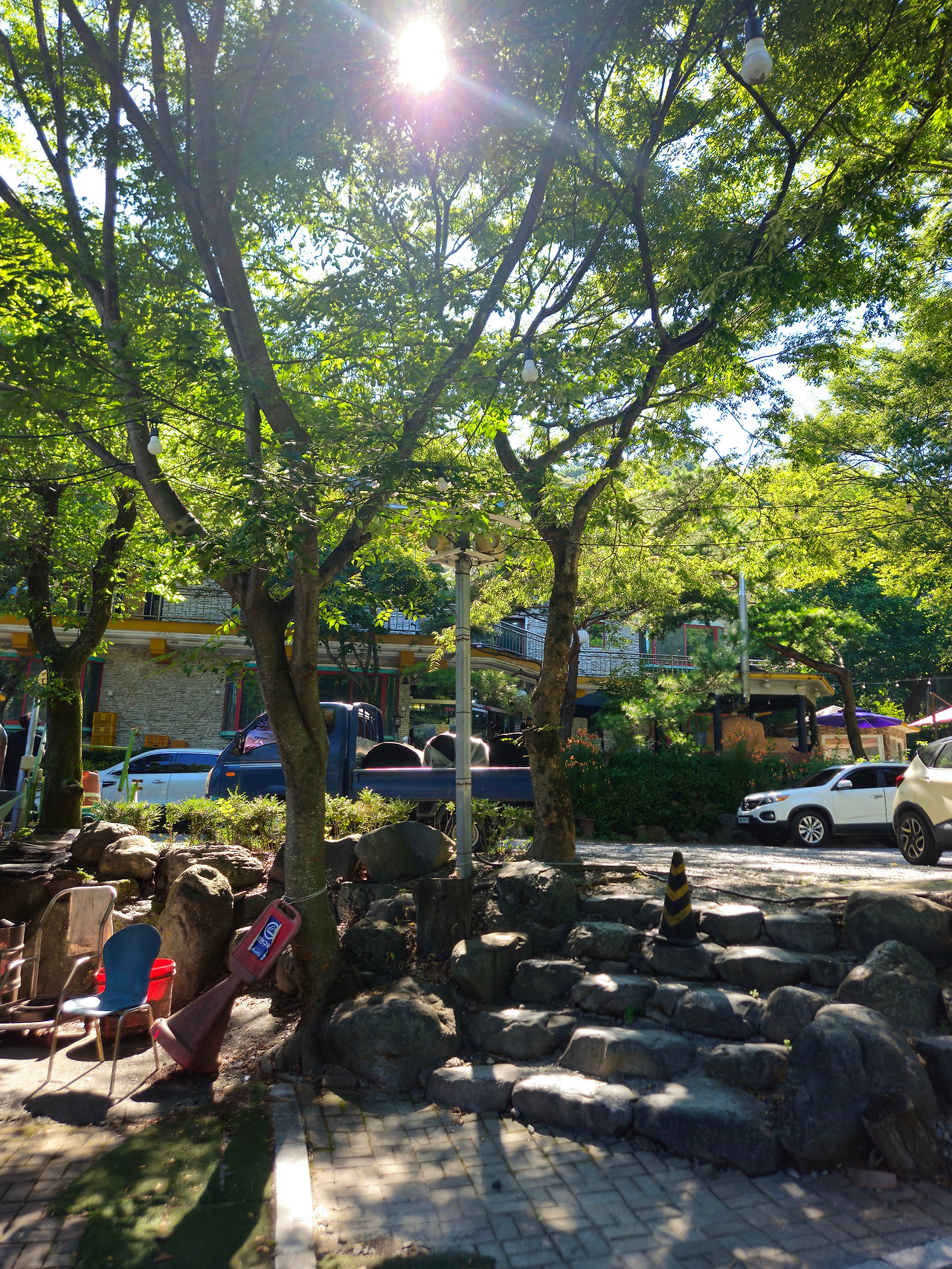 날씨도 정말 좋았고 펜션에 사람들도 많이 없어서 조용해서 마음에 들었다. 펜션에 도착해서 짐을 풀고 냉장고에 음료수, 신선식품, 술 등을 빠르게 넣고 물놀이를 즐기러 계곡으로 갔다. 특히 날씨가 더웠기에 빨리 물놀이를 하고 싶었다. 계곡은 펜션에서 조금 내려가면 있는데 저번주에 비가 많이 내려서 계곡 물이 깊어져서 정말 좋았다. 제일 깊은 부분은 수영을 할 정도로 깊었고 물도 차고 시원해서 더위를 날려버리기에 좋았다. 물놀이를 하다 보니 이렇게 아무 생각 없이 노는 게 오랜만이라서 정말 행복했고 내년이든 내후년이든 다시 이렇게 놀고 싶었다. 뜨거운 여름의 시원한 추억이었다. 시간 가는 줄 모르고 물놀이를 하다 보니 시간이 1시간 30분 정도 지나 있었고 금방 배고파졌다. 그래서 물놀이를 끝내고 펜션으로 돌아와서 족구장이 있어서 2:2로 족구도 한판 했는데 이 "산머루 산장"은 부대시설이 정말 잘 되어 있어서 좋았다.