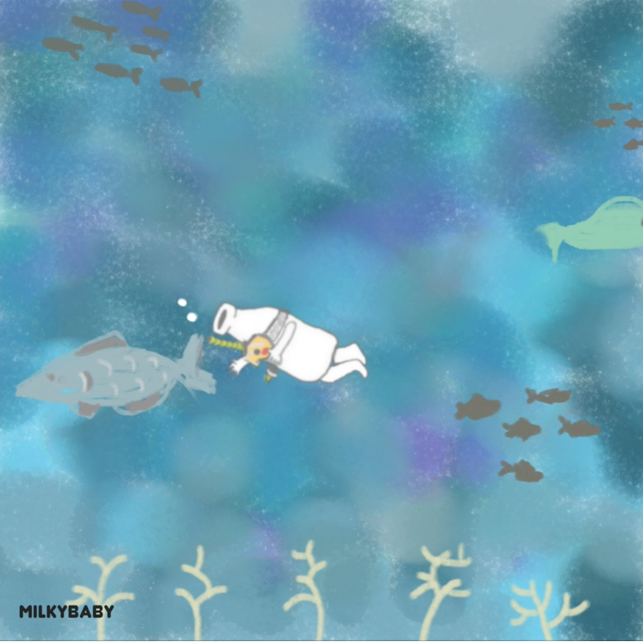 한참 물놀이를 즐기는 밀키에서 떠올린