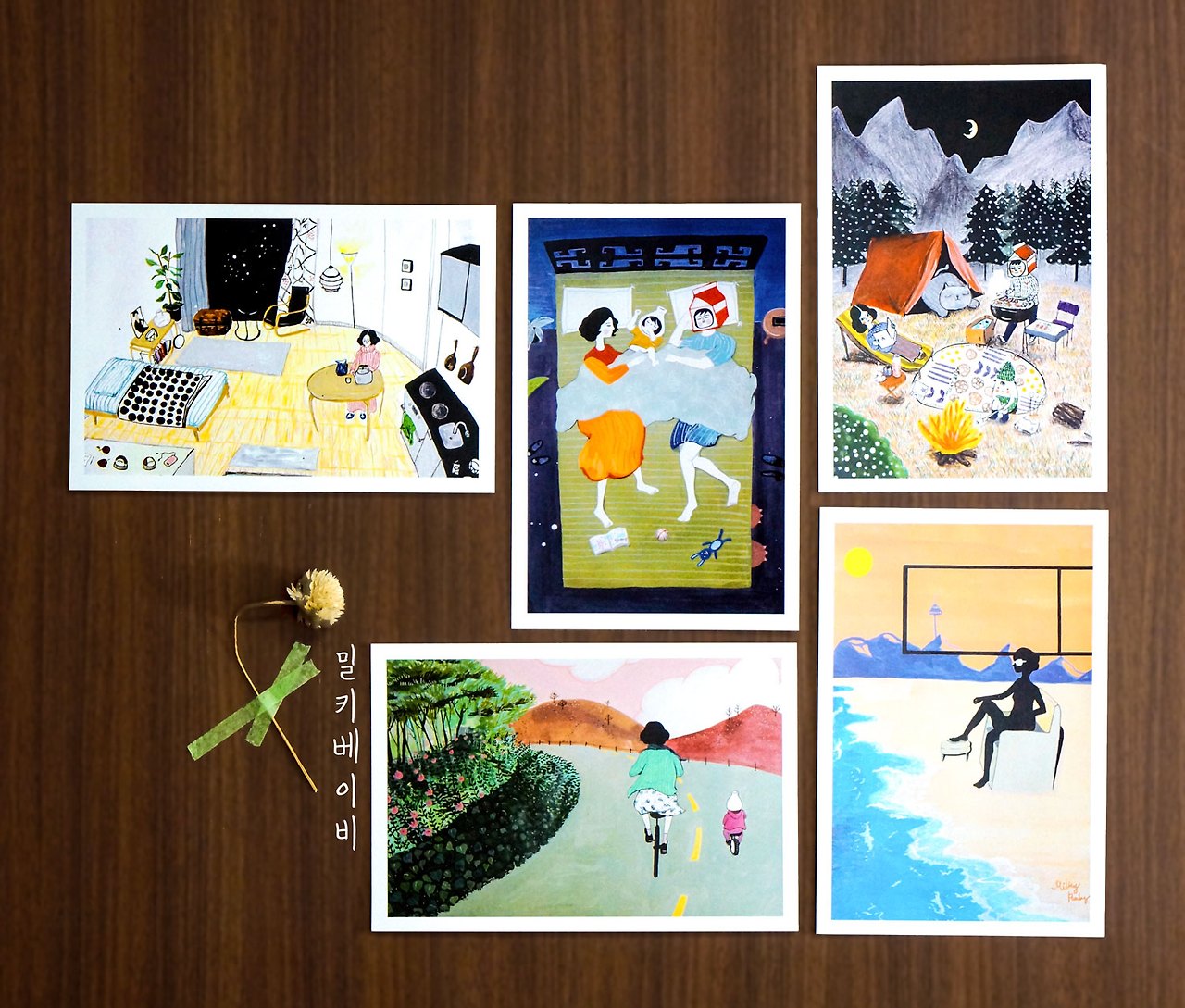 위 그림들 중 딱 5작품만 엽서로 만들었어요.