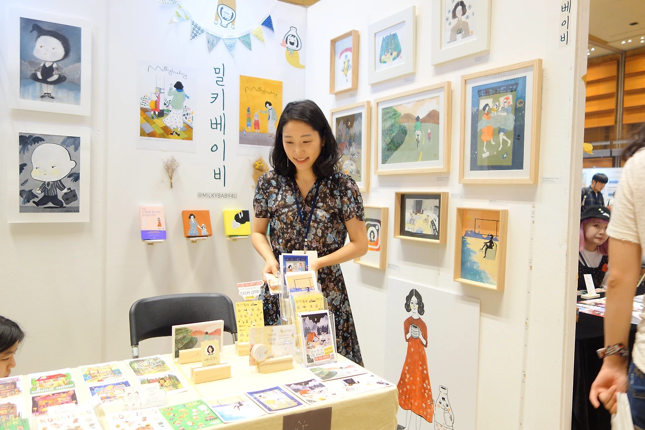 지금, 저는 서울 일러스트레이션 페어에서 전시중입니다.