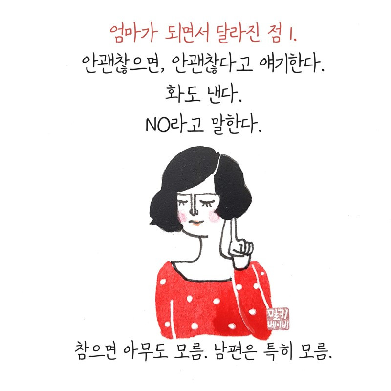 요즘 제가 느끼는, 엄마가 되면서 달라진 점 첫 번째 이야기. 엄마 자신을 돌보는 방법은 여러가지가 있겠지만, '내 감정에 솔직하기' 만한 게 없는 것 같아요.