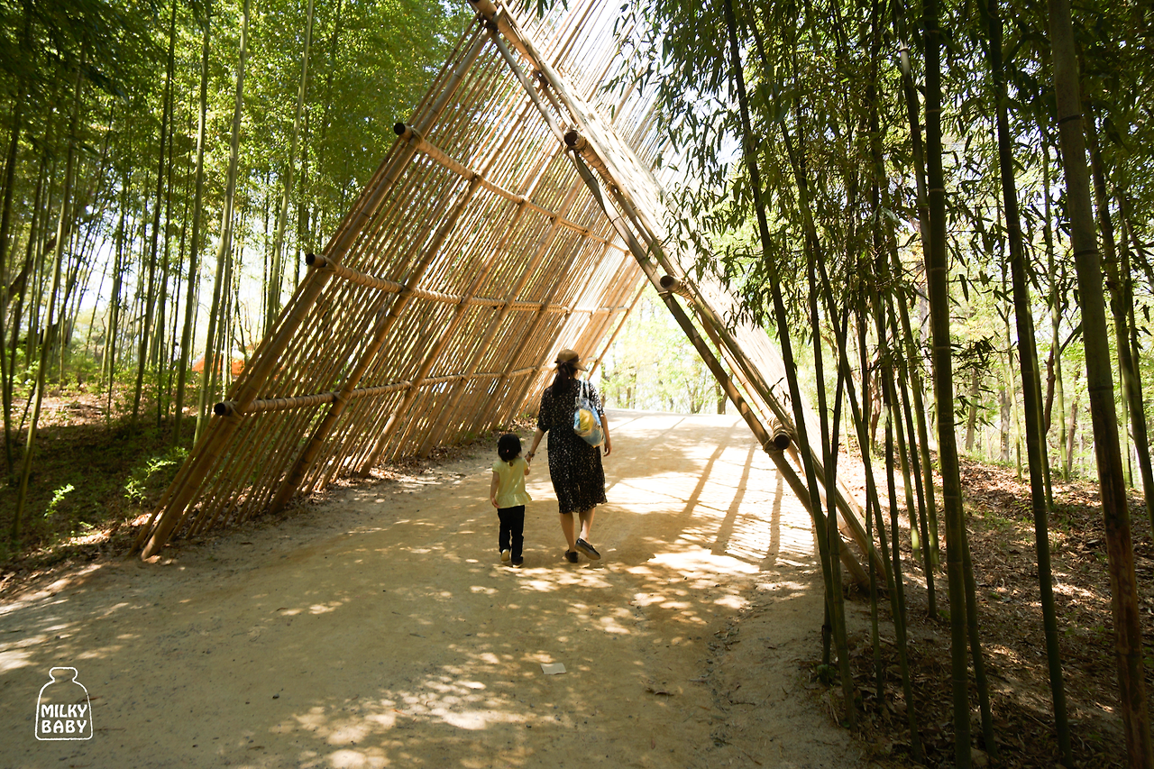 대나무숲으로 들어서니, 대나무가 바람결에 흔들리는 소리, 숲에서 나오는 피톤치드, 초록의 물결 등...오감이 힐링하는 기분이었어요. 아이는 대나무를 실제로 만져보고, 죽순도 관찰하고, 대나무 잎 사이로 반짝이며 부서지는 햇빛을 보며 "와...예쁘다."라고 읊조립니다.