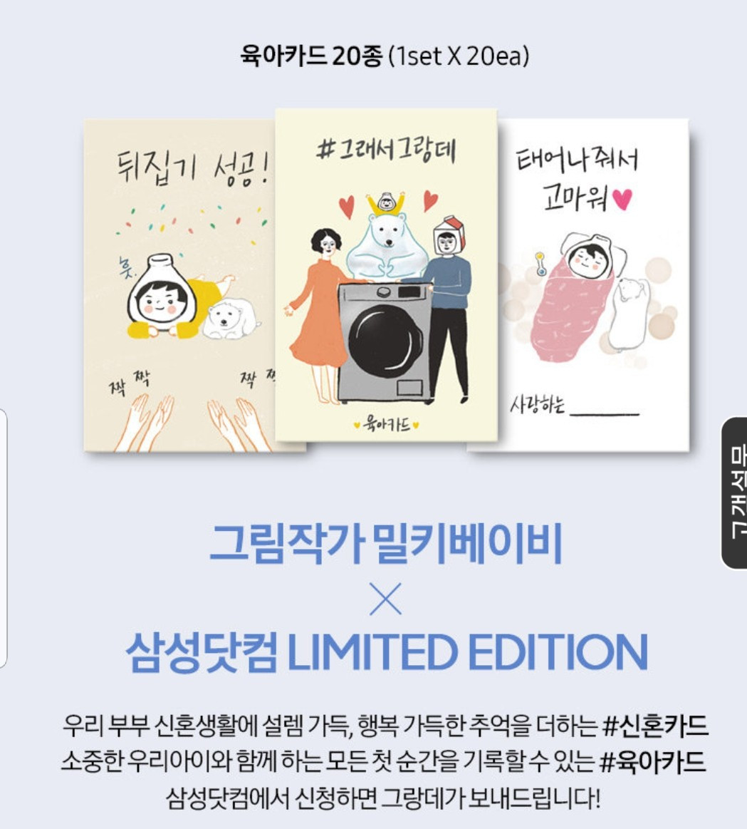 #삼성 건조기 그랑데 16Kg 출시 기념 프로모션 상품으로 밀키베이비 육아 성장카드 & 신혼 성장카드를 작업했어요.
