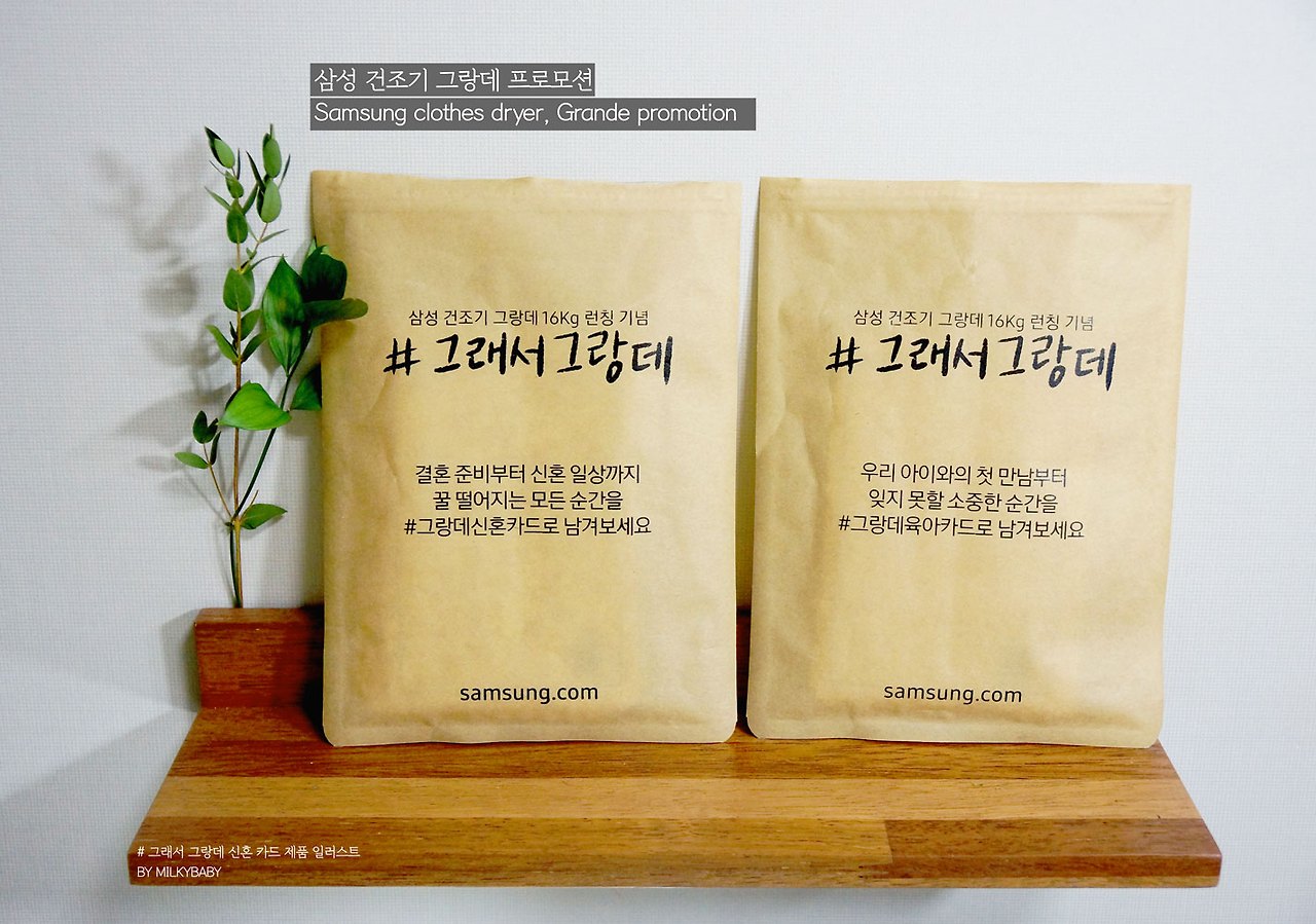 #삼성 건조기 그랑데 16Kg 출시 기념 프로모션 상품으로 밀키베이비 육아 성장카드 & 신혼 성장카드를 작업했어요. 예쁜 크래프트 봉투에 담겨 신청하신 분들께 배송되었는데, 다들 받으셨나요^^?
