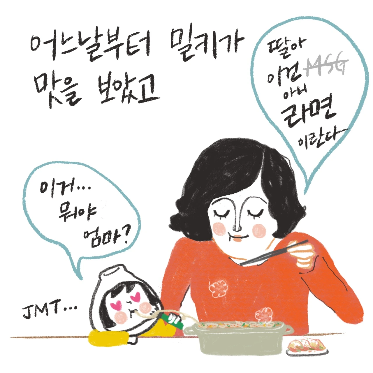 라면은 하나의 예일 뿐이에요. 아무생각 없이 즐겨 먹어왔지만, 엄마가 된 후 일상의 작은 부분들이 다르게 다가와요. 의식조차 못했던 잘못된 부분들, 조금씩 바꿔나가는게 중요한 것 같아요.