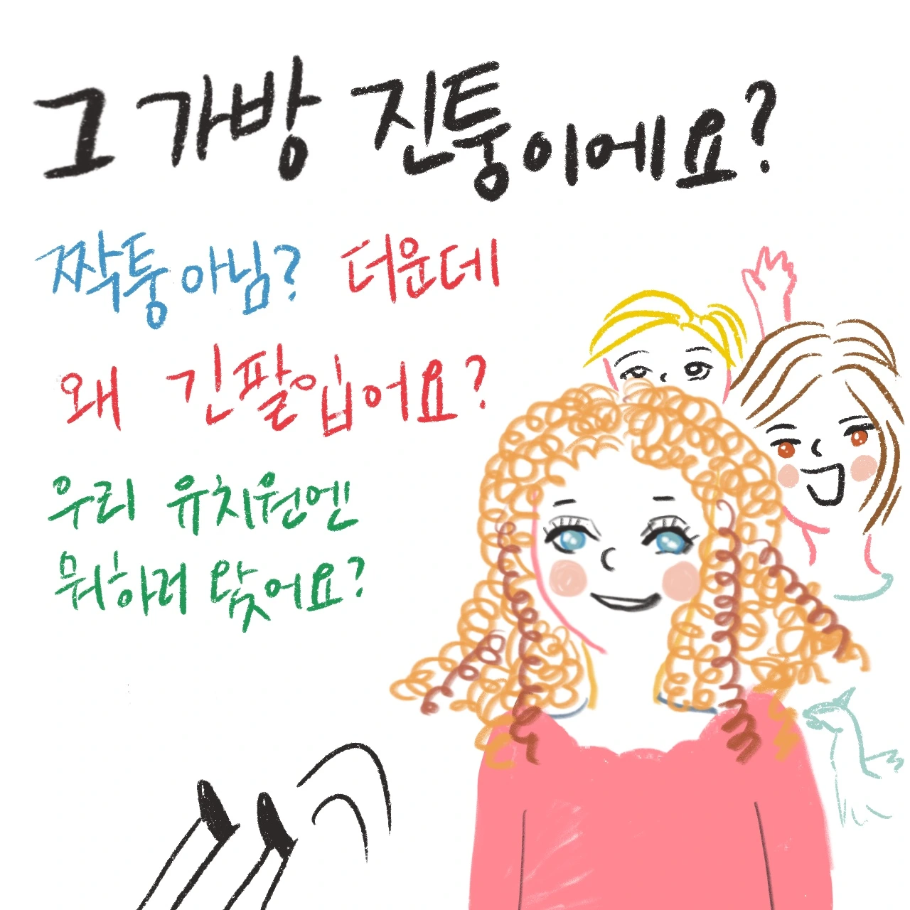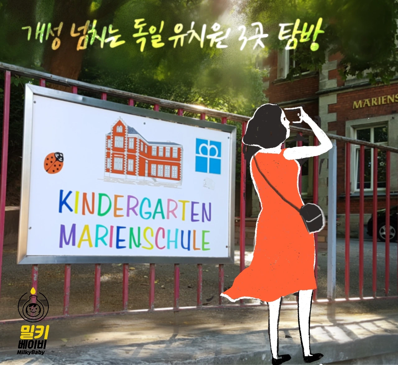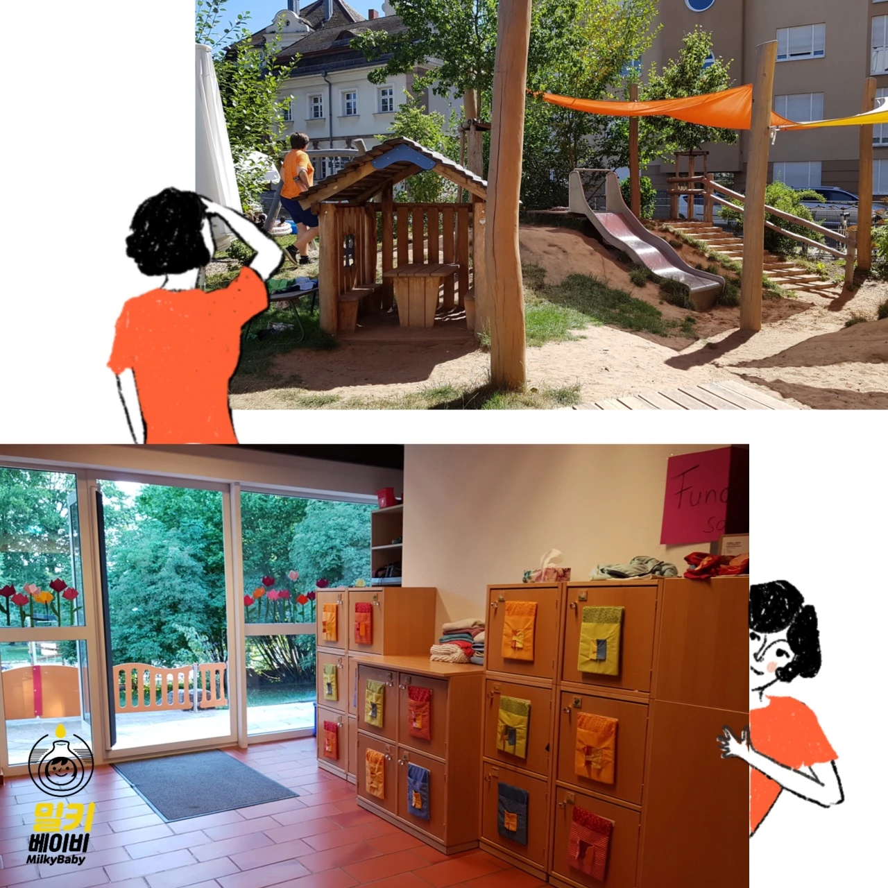 한국의 육아 환경에 대해 그동안 여러 편의 그림에세이를 그려왔고, 한국은 여전히 아이들에게 안전하고 즐거운 환경을 마련해 주기까지 많은 과제가 남아있어요. 그러나 독일의 교육 또한 급격하게 바뀌기보다, 기업과 사회, 부모와 선생님 등 다양한 계층의 노력이 모여 끊임없이 시도하고 있는 과정 중에 있었어요. 한국의 어린이들이 가정을 벗어나 처음으로 만나는 환경도 스트레스는 적게, 행복한 마음은 많이 느낄 수 있는 방향으로 발전하면 좋겠습니다.