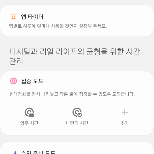 - 디지털 디톡스 관련 앱이나 기능을 이용한다