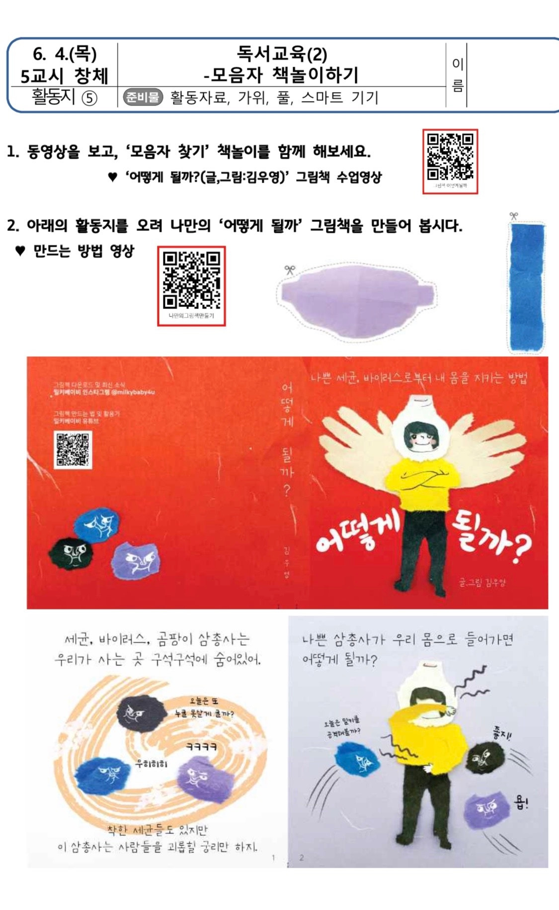 실제로 서울 소재의 한 초등학교에서 200여명의 학생들에게 제 그림책을 교재로 삼아 비대면 온라인 수업을 하시고, 리뷰를 보내주셨습니다. (감사합니다^^) 코로나 예방수칙을 함께 익히고, 한글도 배워보는 커리큘럼으로 진행되었습니다. 수백명의 학생들이 제 그림책으로 수업을 한다는 사실을 인스타그램에 올리자